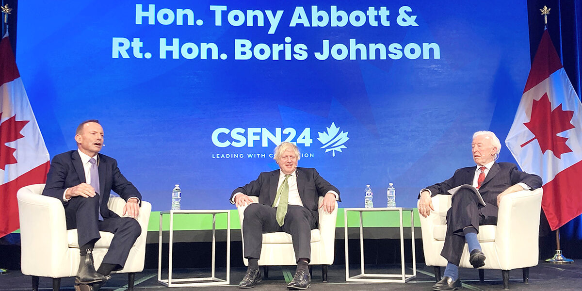 Canada Strong and Free Network (CSFN) konverentsi avaõhtul 10. aprillil olid peakõnelejateks Suurbritannia endine peaminister Boris Johnson ja Austraalia endine peaminister Tony Abbott. Nende vestluse moderaatoriks oli John O’Sullivan, Briti poliitiline kommentaator ja ajakirjanik, kes oli töötanud ka kõnede kirjutajana endisele Suurbritannia peaministrile Margaret Thatcherile.