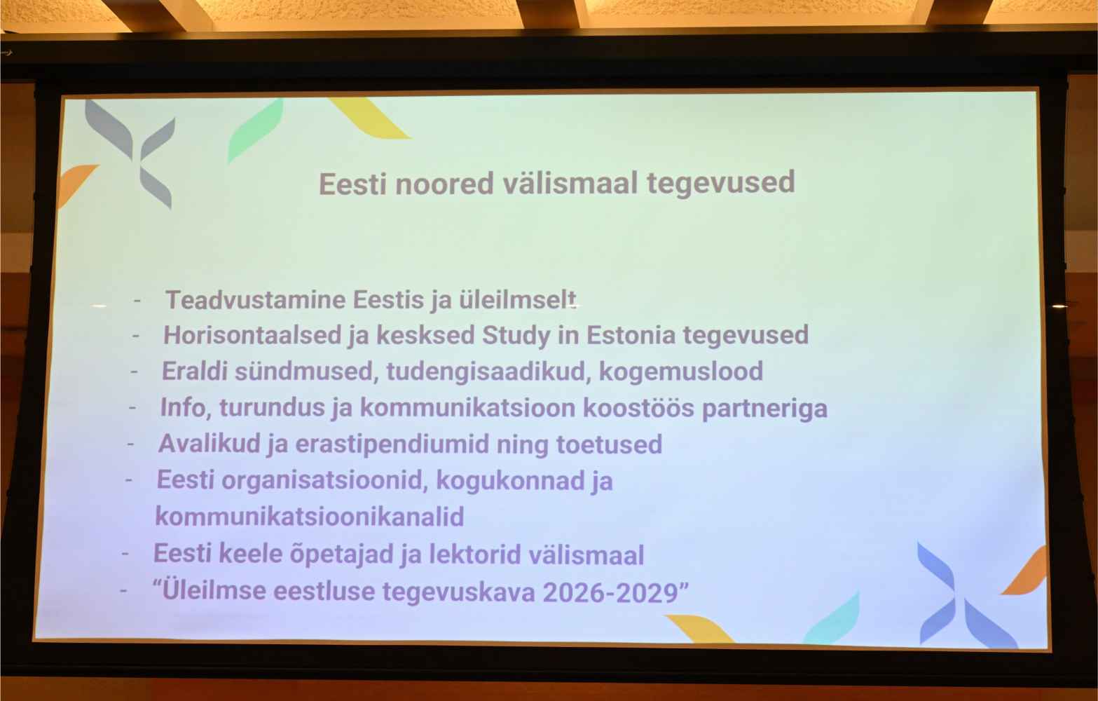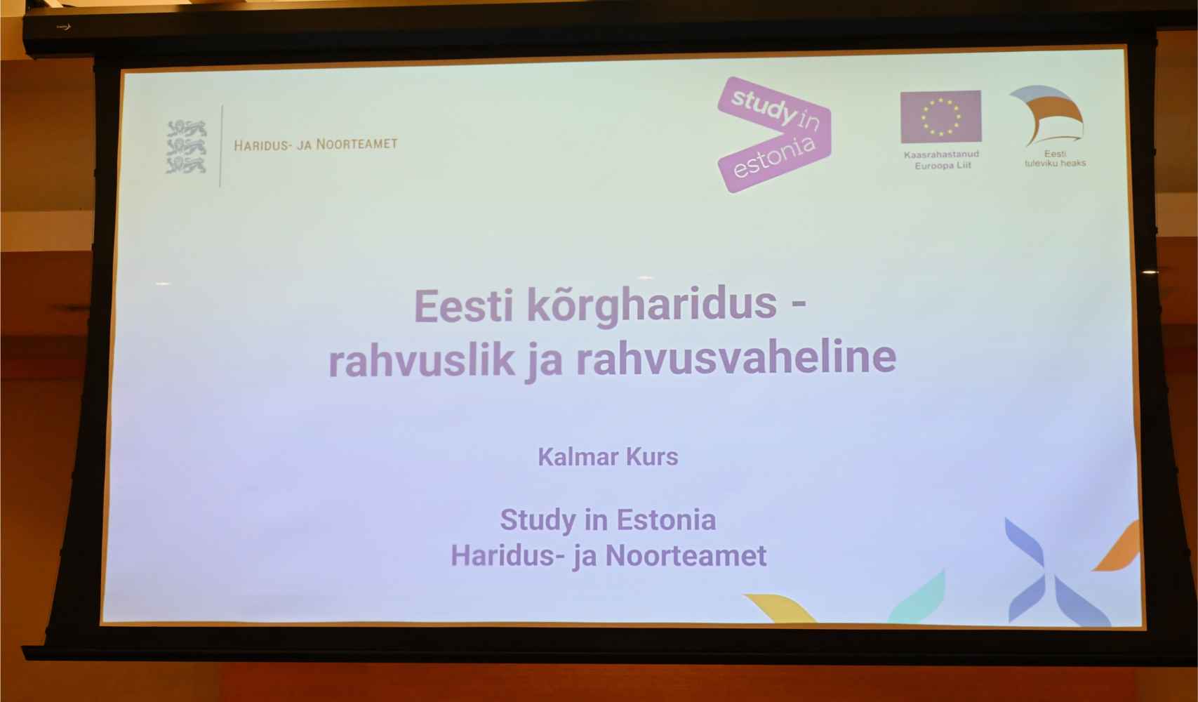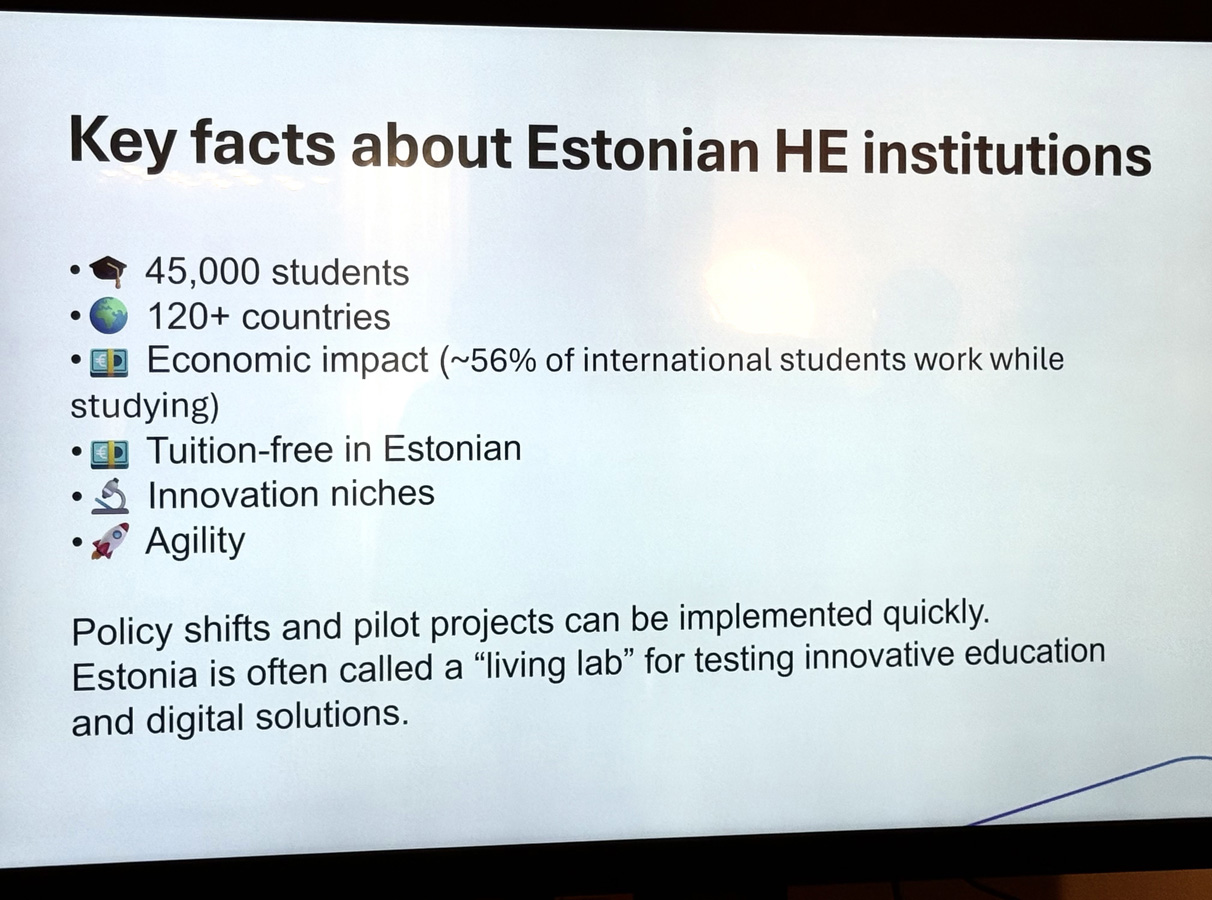 Sellist pealkirja kandis ettekanne, mida esitas „Study in Estonia“ programmi nõunik Kalmar Kurs Haridus- ja Noorteametist. Paljudele saalis oli ta tuttav läinud suve ESTO 2025 kommunikatsioonijuhi ametist, mille töö osana ta külastas tänavu kevadel ka Torontot. (EE artiklid s.a. märtsis ja mais).
