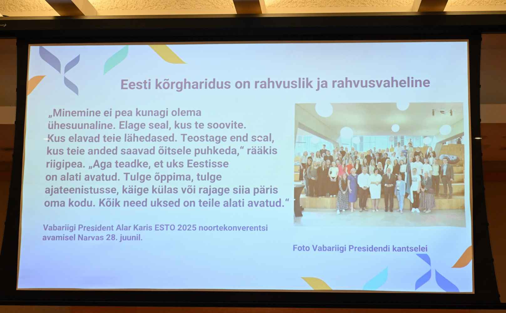 Näiteid Eesti kõrghariduse rahvuslikkusest, rahvusvahelisusest, aga ka kvaliteedist oli tal varnast võtta: maailma kuues taimebotaanik professor Ülo Niinemets, AK uudistesaates suvel esinenud Liam Ivanko Kivirist, kes tuli USAst Eestisse õppima, jäi pidama ning ta vanemad kolisid ka järele: „Väliseestlaste huvi Eesti ülikoolide vastu on kasvutrendis“ (err.ee/1609775796/valiseestlaste-huvi-eesti-ulikoolide-vastu-on-kasvutrendis) ning Cedric (Leitham) Moore, „Eesti mees Montréalist õpib meie rahvuslikku ehituskunsti“ Postimehes 29.05.2025.