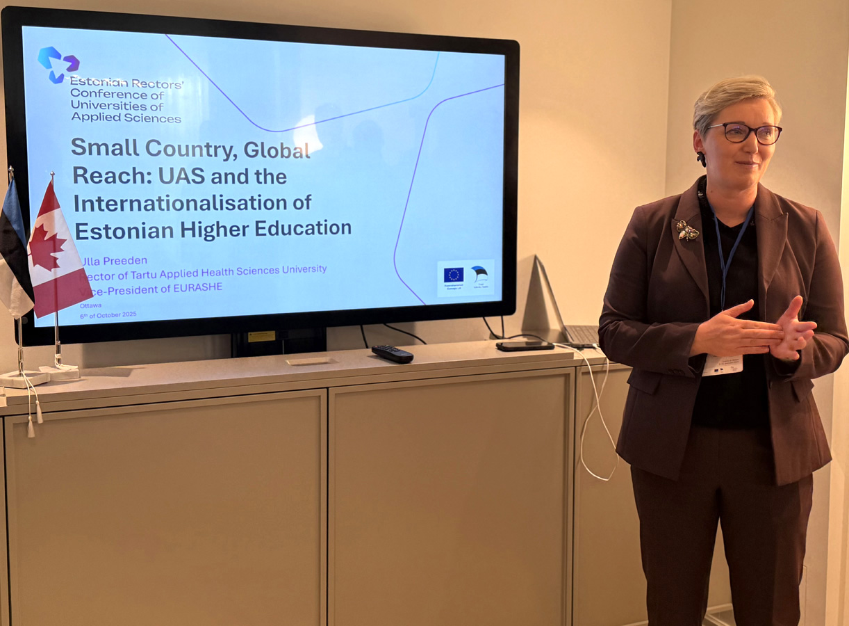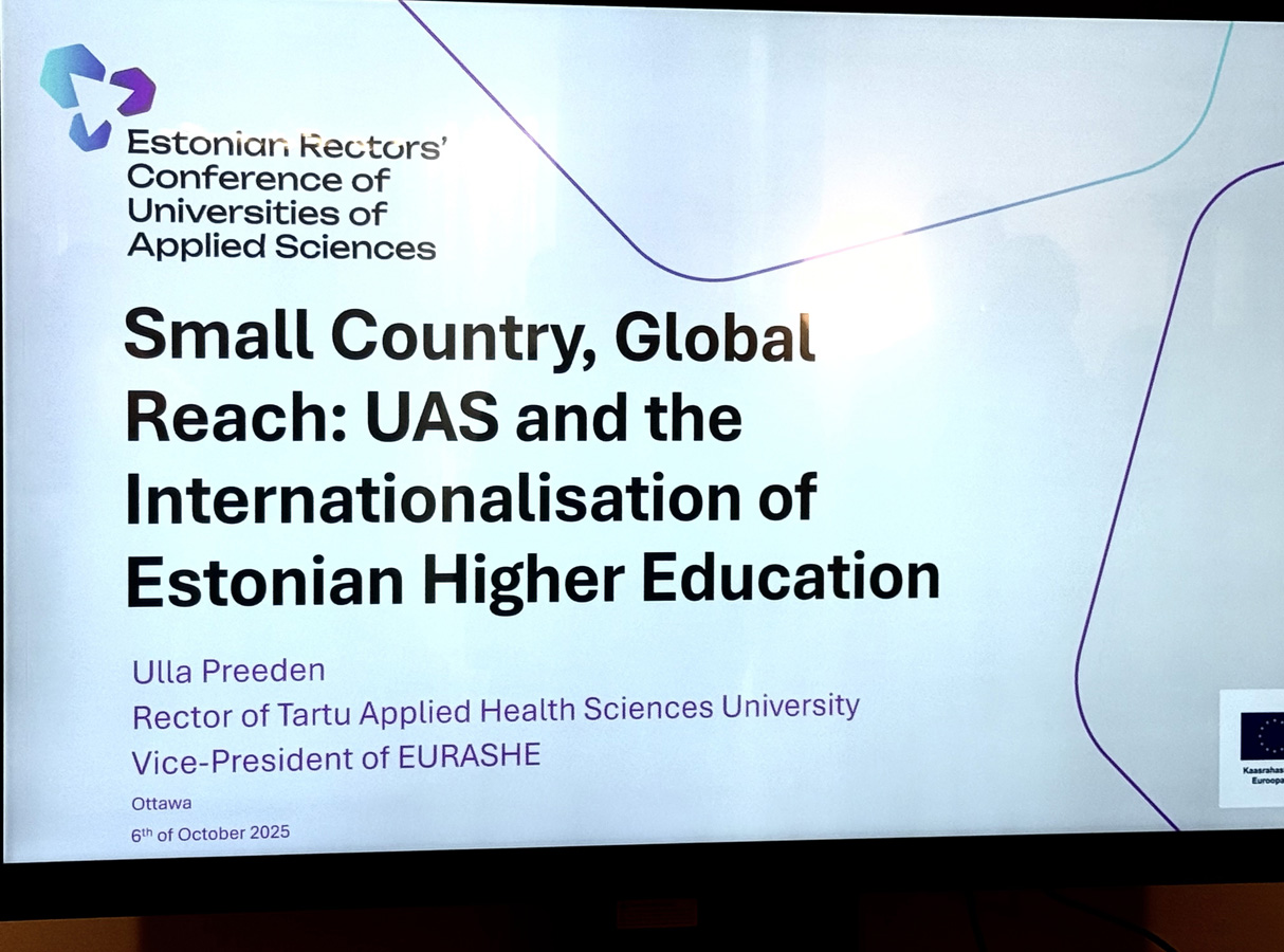 Ulla Preeden (Tartu Tervishoiu Kõrgkool ja EURASHE (the European Association for Applied Sciences in Higher Education) asepresident esines põhjaliku ettekandega Eesti kõrghariduse rahvusvahelistumisest ja selle eesmärkidest suurepäraste illustreerivate slaidide taustal.