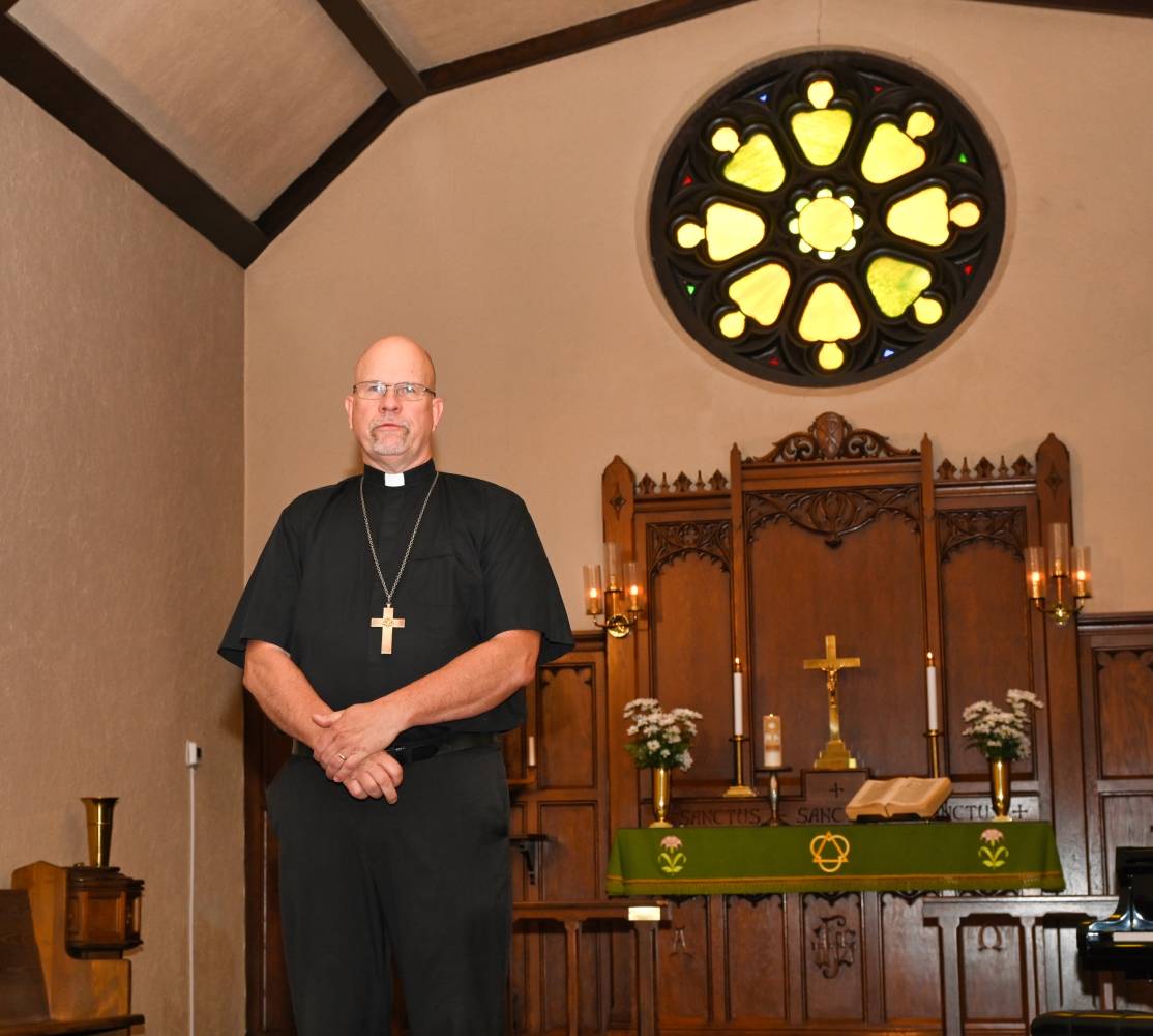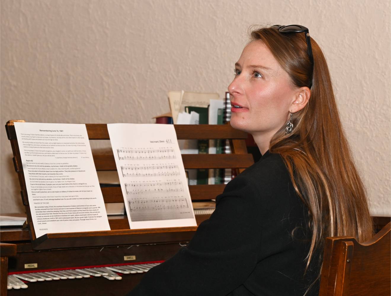Teenis õpetaja Davis Kaneps, orelil Kara-Lis Coverdale, ja epistli lugeja Biruta Kwapisinski.