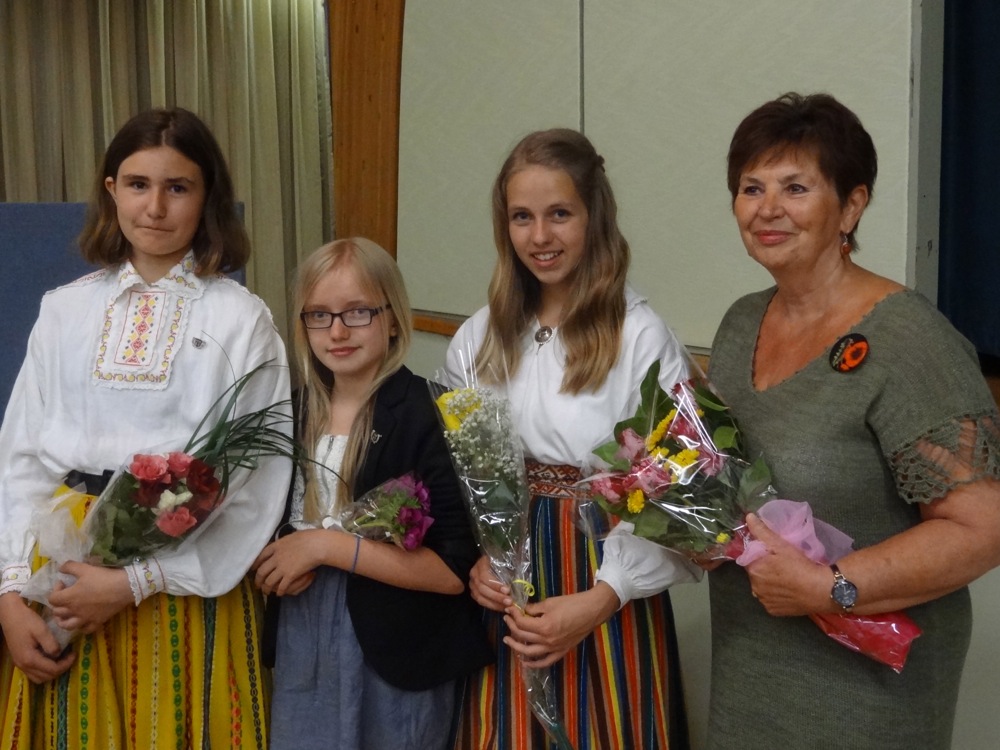 Kuueaastase emakeeleprogrammi 61. lennu lõpetasid: Kariina Järve (kiitusega), Mari Käärid ja Serena Vilde, õpetaja Erika Kessa.