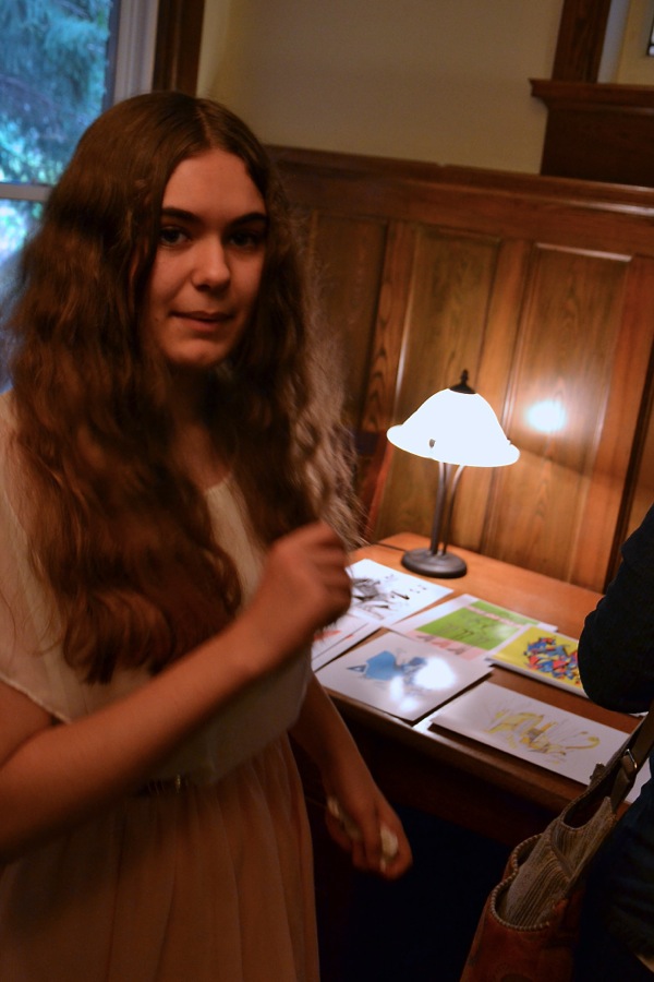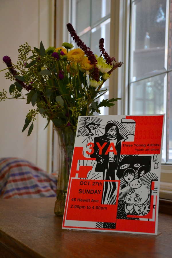 Three young artists had the opportunity to show their work in a private home at 46 Hewitt from 2:00-4:00 p.m., Sunday, October 27. The artists included Evi Tampõld, Samarah Iddon and Arianna Behan. When asked why she would open her home to these artists, Norma-Lee Weiss commented, "I love being able to provide a space to help young people show their art for the first time and give them the opportunity to discuss their work with members of the public and with each other."