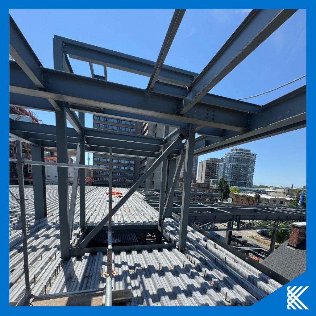 First glimpse from the KESKUS rooftop level—yep, that's the CN Tower / Tour CN peeking through the steel lattice! Once the safety railings are up and the floors poured in the coming weeks there'll be more images to share!