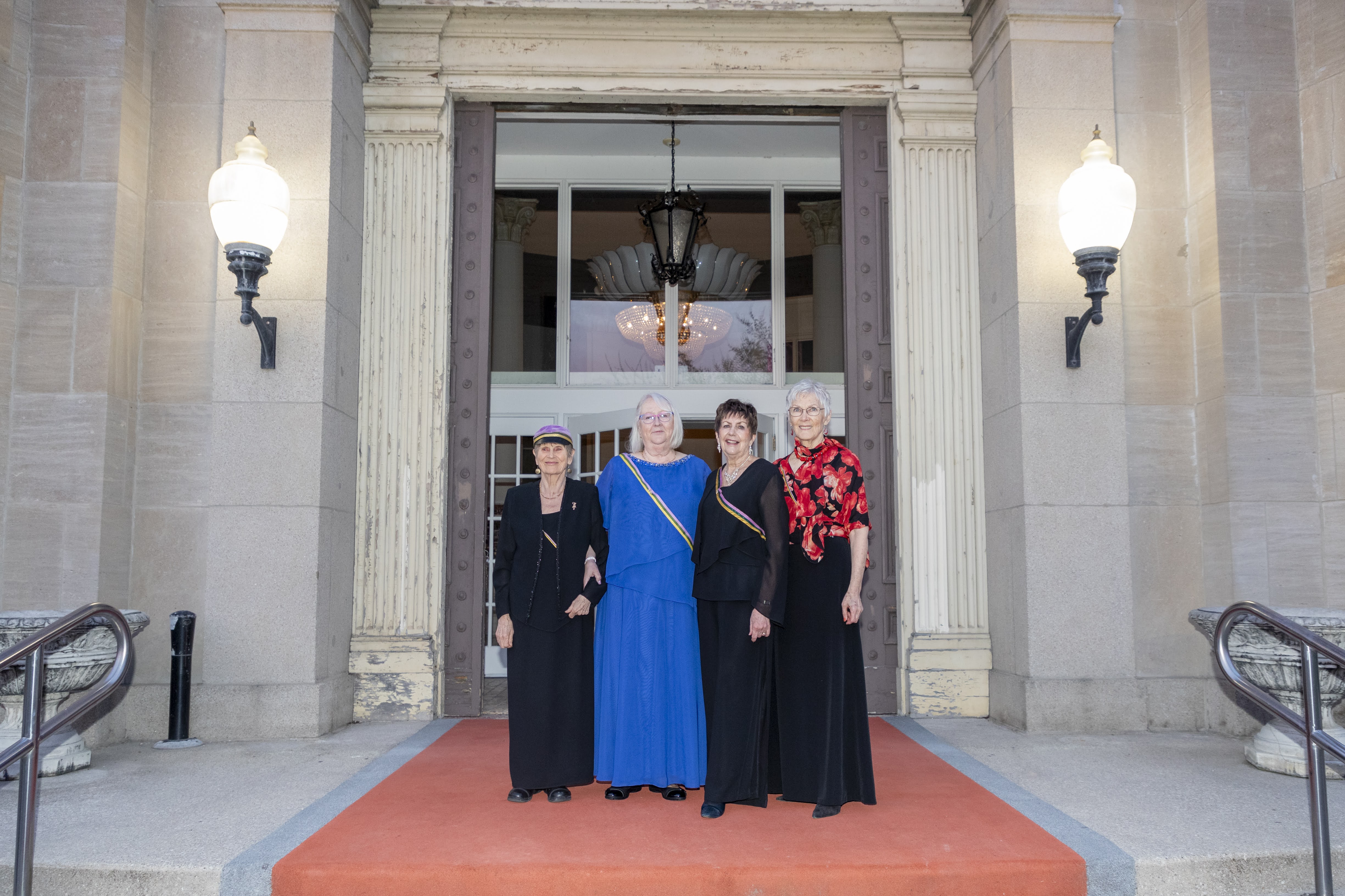 Amicitia auvilistlased: vas. Ellen Leivat, Ingrid Lupp, Helle Arro ja Maaja Matsoo. Helle ja Ingrid said selle austava tiitli käesoleval juubeliballil. Foto: Tory Hutchings