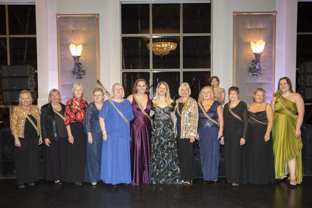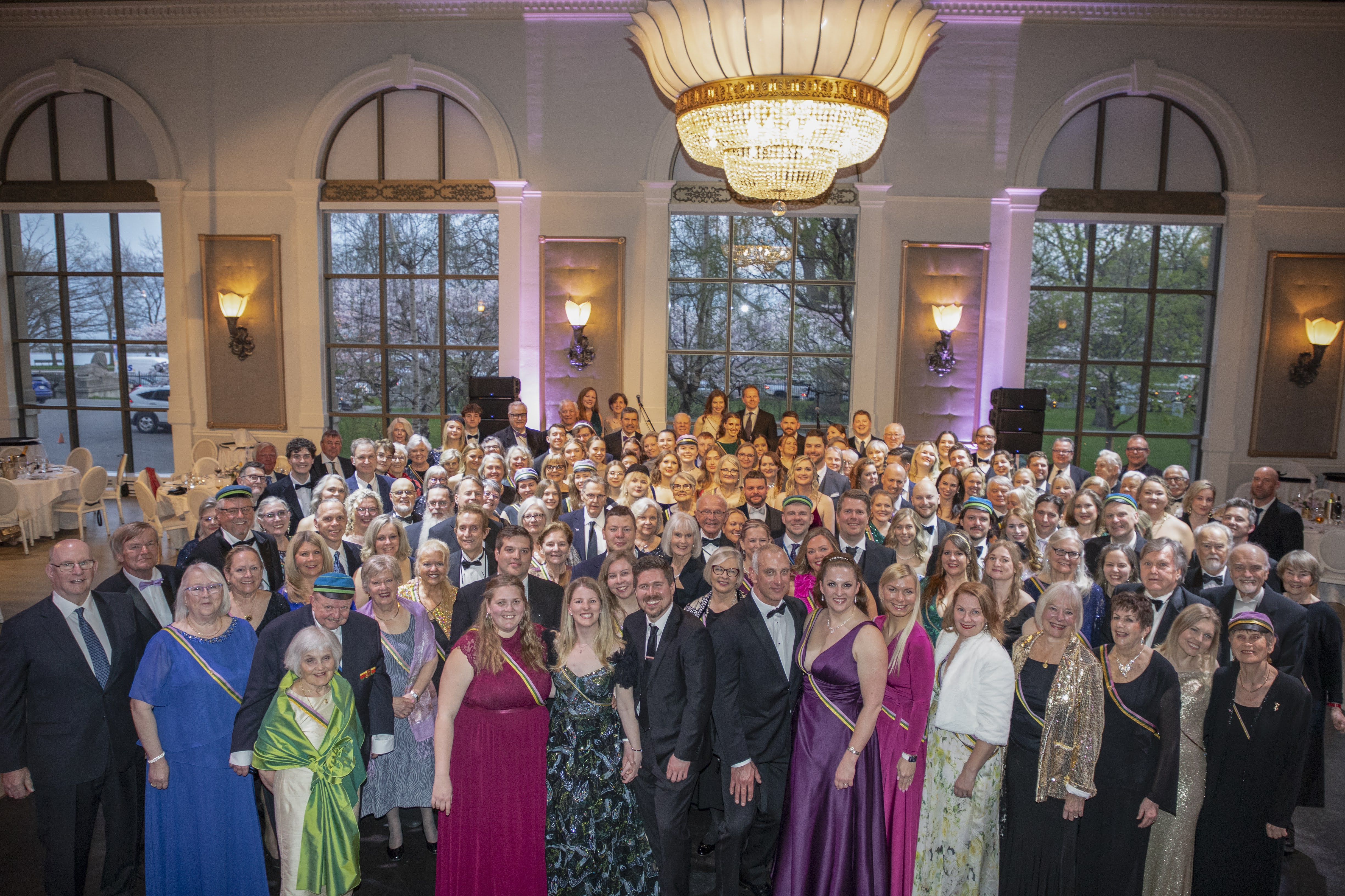 Korp! Amicitia liikmed koos külalistega elegantses ballisaalis Torontos Liberty Grand Renaissance Room’is 100.a. juubeli tähistamisel 3. mail 2025. Foto: Tory Hutchings