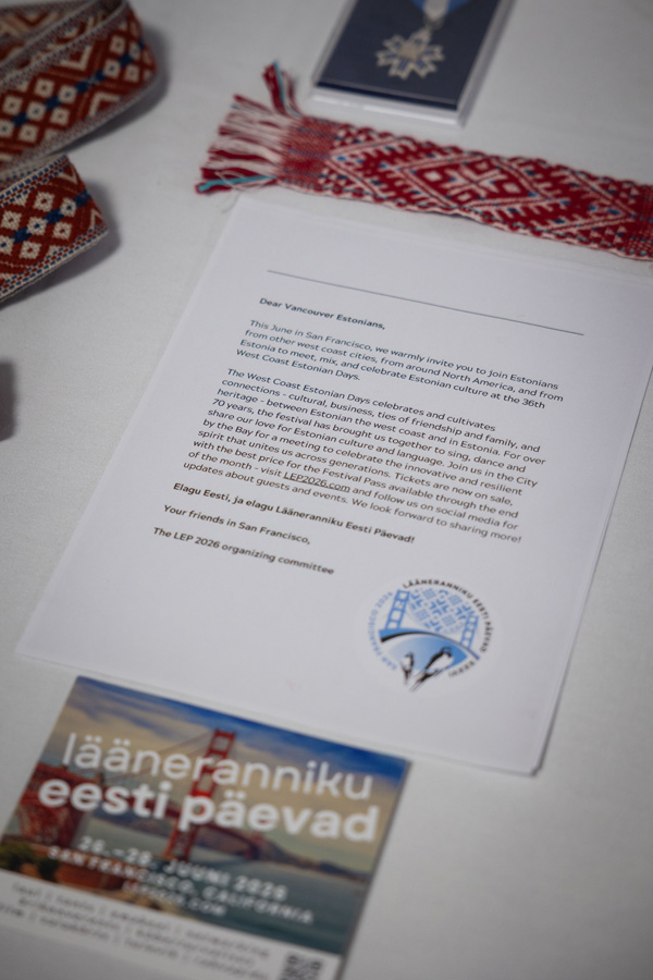 Alongside members of the Vancouver Estonian community, we were honoured to welcome friends from the Latvian and Lithuanian communities; representatives from our reception sponsor, Nortal; video greetings from Estonian Foreign Minister Margus Tsahkna; and greetings from Vancouver Estonian Honorary Consul Evaleen Jääger Roy. We were also grateful for the inspiring words shared by our guest speaker, Kadi Metsandi, former Deputy Permanent Representative of Estonia to OECD and UNESCO. Everyone’s presence was a meaningful reminder of our enduring bonds and the importance of standing together in friendship and shared history.