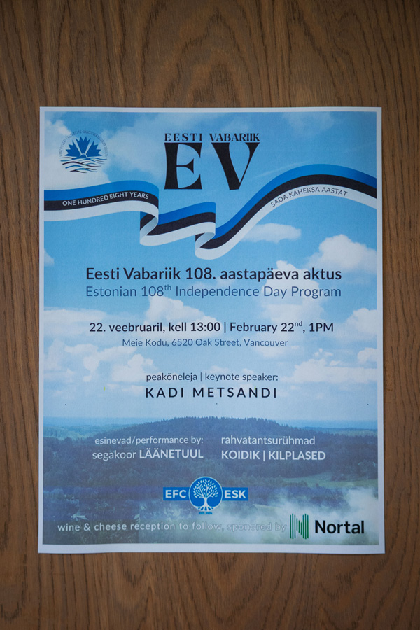 Thank you to all of the attendees for joining us, to the presenters and performers, and to all of the volunteers who made this event possible. We extend heartfelt thanks to our major event sponsor, Estonian Foundation of Canada, for their continued support of VES, and to Nortal for generously sponsoring our wine and cheese reception. Your support makes it possible for our community to come together in celebration and remembrance.