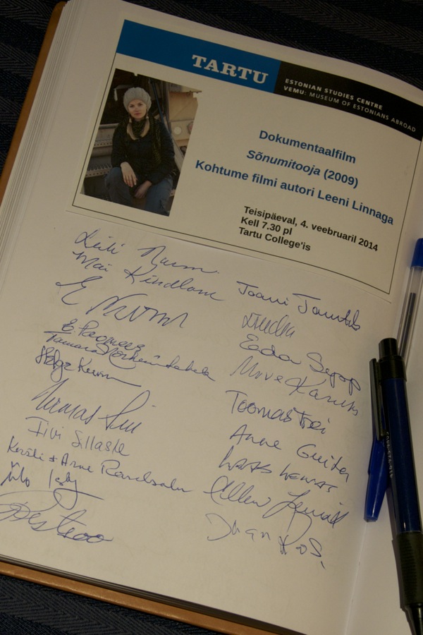 Teisipäeval, 4. veebruaril näidati Tartu College'is dokumentaalfilmi "Sõnumitooja" (2009). Lisaks toimus ka kohtumine filmi autori Leeni Linnaga, kes on ka Estdocs 2013. linastunud filmi "Veregrupp" režissöör.