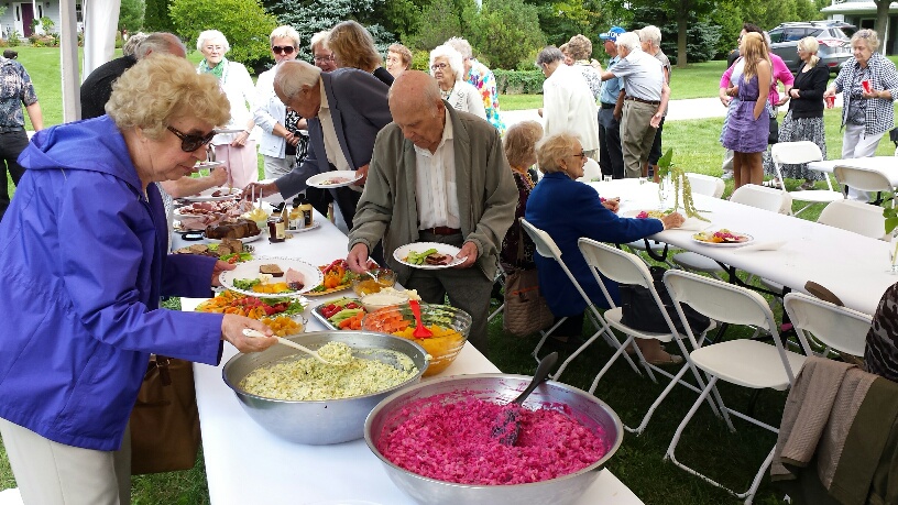 Kui tervitused ja ühine söögipalve oli peetud, sai peagi kehakinnitust võtta. Sink maitses ülihea ning ka kõik muud maiuspalad, mille eest olid hoolitsenud Ülle Veltmann Toronto Eesti Maja kohvikust ja Hamiltoni koguduse pere. Kokkuvõtteks võisid kõik osavõtnud tänumeeles tõdeda – oli kaunis ning õnnistatud pühapäev.
