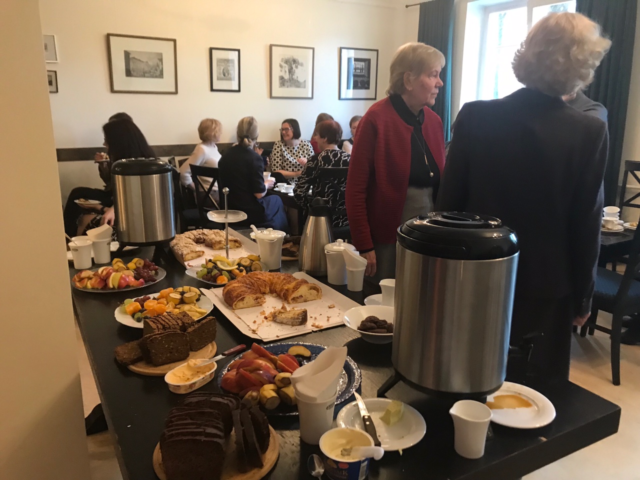 Aktusele järgnes seltsi ruumides Riia tänaval kohvilaud, mille käigus toimus elav arutelu seltsi kolme põhimõtte teemal: rahvuslikkus, individuaalsus ja demokraatia – teemad, mis on Venemaa agressiooni tõttu üha enam aktuaalseks muutunud. Korduvalt kõlas mõte, et me ei tohi neid väärtusi iseenesest-mõistetavaks pidada. Nii, nagu olid need teemad päevakorras ENÜSi asustamishetkel aastal 1911 – enam kui 110 aastat tagasi -, on nad jälle aastal 2022.