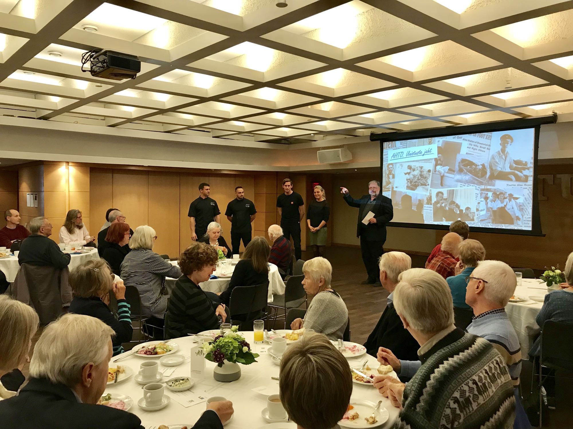 Laupäeva, 20. oktoobri 2018.a hommikul toimus Torontos Tartu College'is Eestlaste Dokumentaalfilmide Festivali EstDocs 2018 filmihõnguline hommikusöök (Breakdocs) restorani SALT pool Tallinnast. Hommikusöögile järgnes ettekanne Jaanis Valk'i ja Erik Norkroos'i filmi "Ahto. Unistuste jaht" saamisloost.