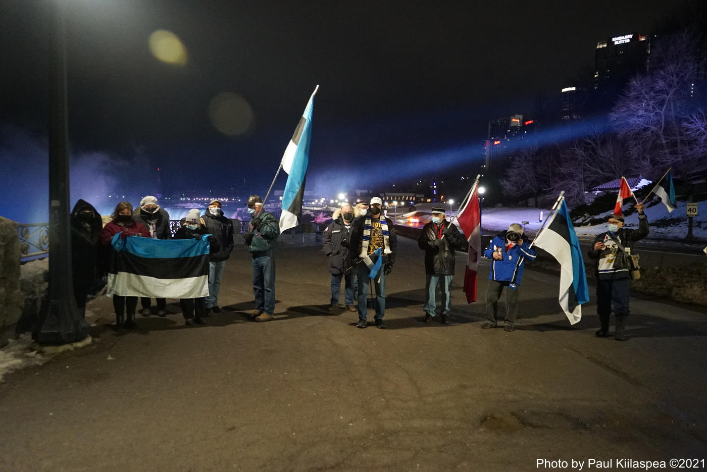 Kolmapäeval, 24. veebruaril 2021.a värvusid Kanadas mitmed tuntud maamärgid EV103 sünnipäeva auks sini-must-valgeks. Trikoloori värvides võis näha nii Torontos asuvat CN Tower'it kui ka Kanada ja USA piiril asuvat Niagara Falls'i. CN Tower'i ja Niagara Falls'i Eesti värvidesse värvumise organiseeris Eestlaste Kesknõukogu Kanadas.