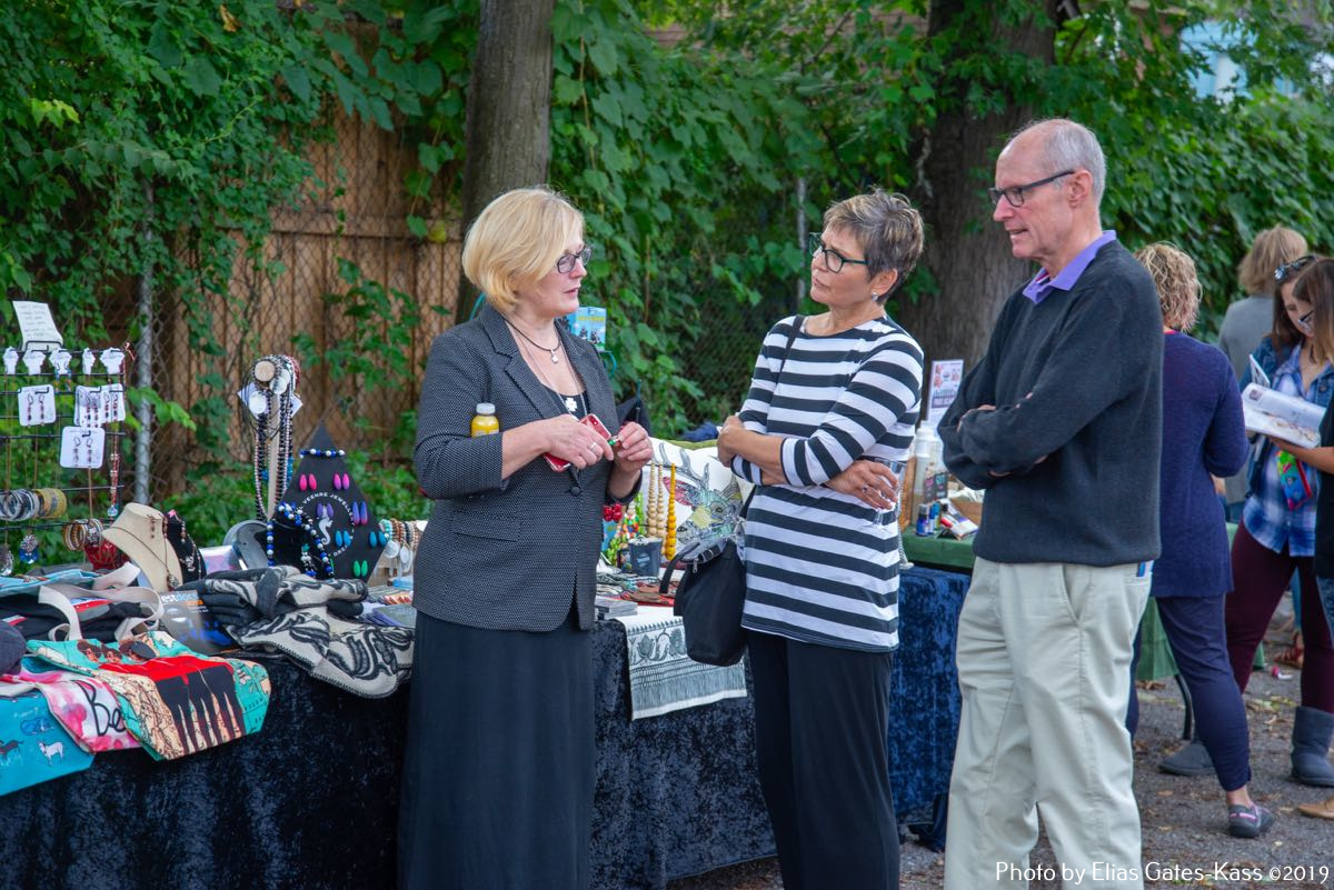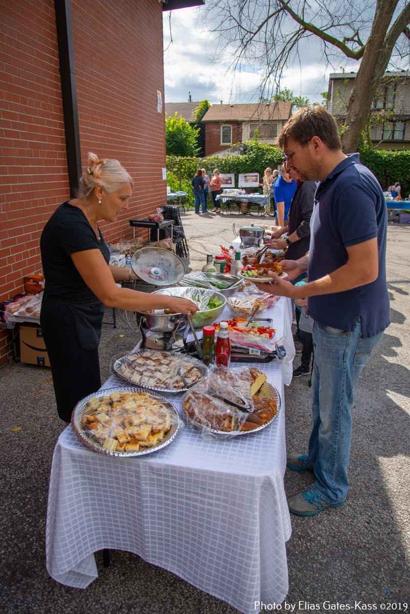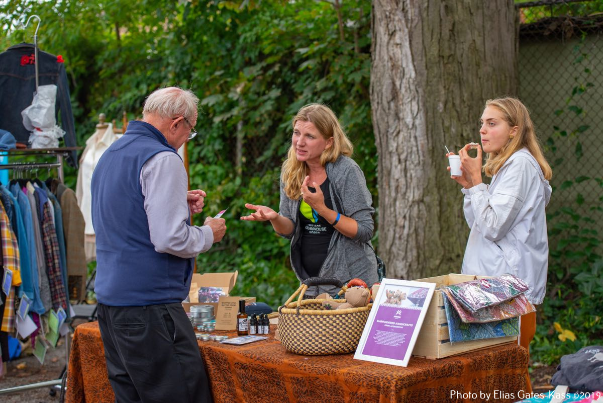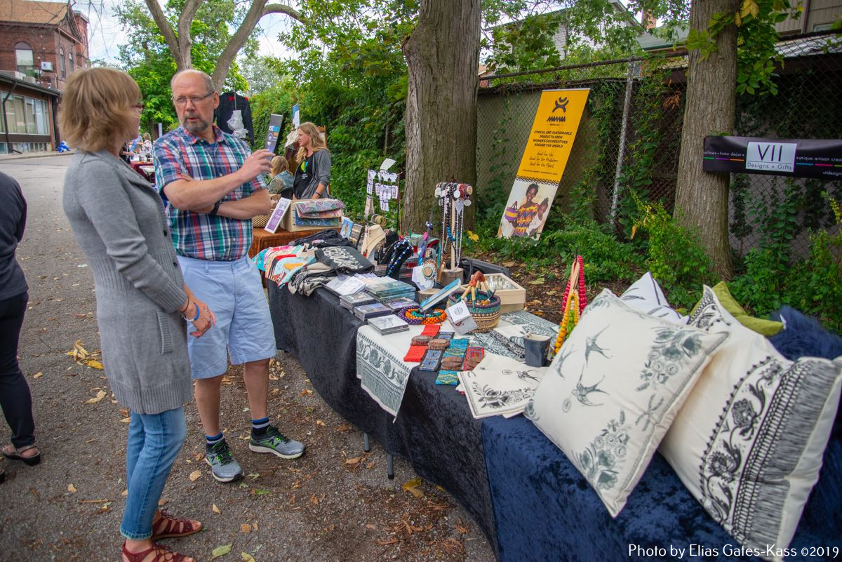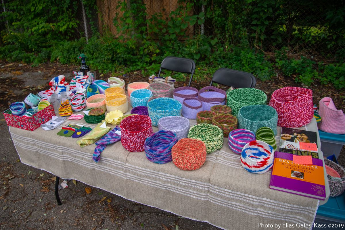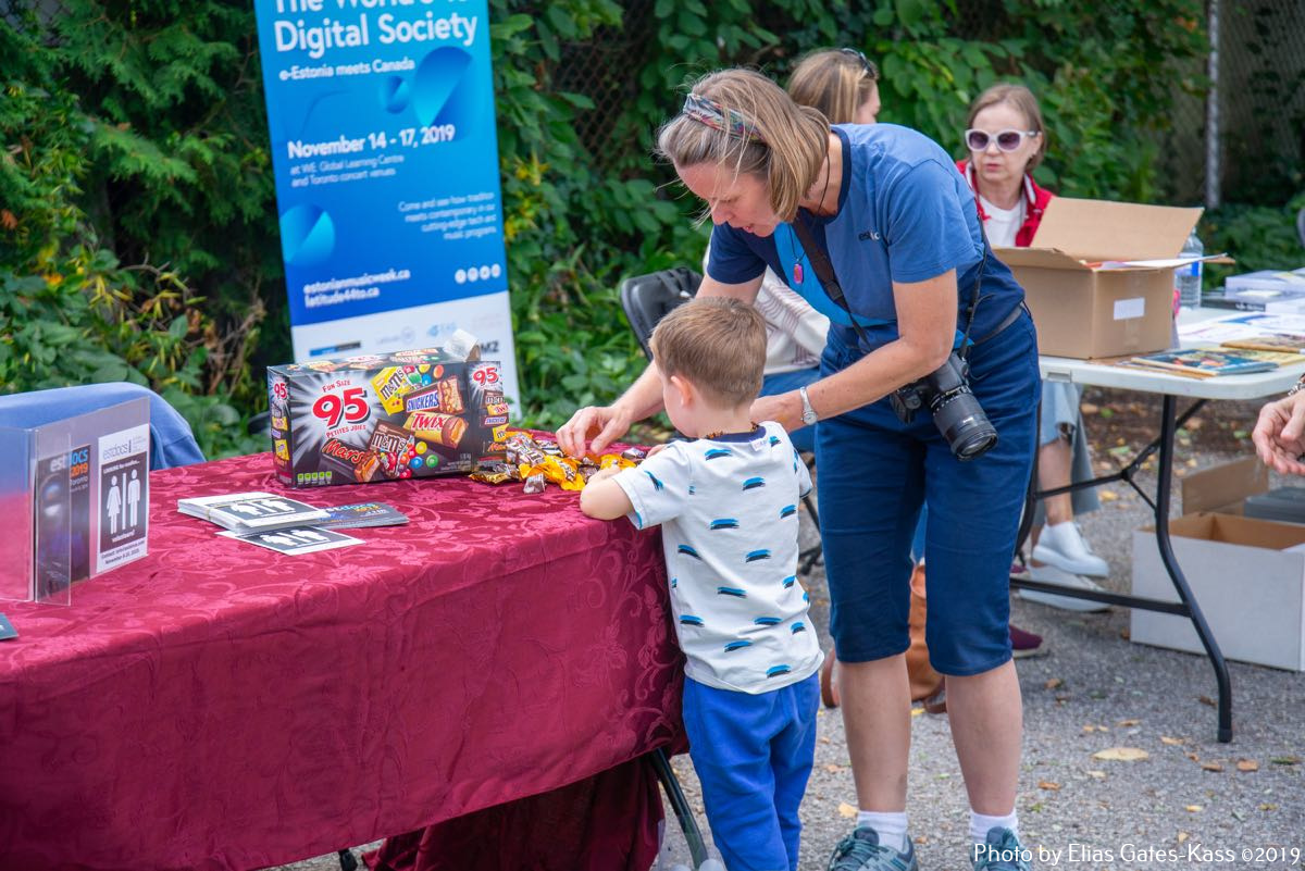 Eesti organisatsioonidest olid õueplatsil esindatud International Estonian Centre, Eesti Sihtkapital Kanadas, Toronto Eesti Lasteaed, Toronto Eesti Seltsi Täienduskoolid, EERO, EstDocs, Jõekääru Seltsi Laste Suvekodu, eesti skaudid ja gaidid Kanadas, Tartu College/VEMU/Music Week, jmt. Müügilettidel pakuti The Wardrobe Designer Leena Tinitsa õmmeldud riideid, Viive Tork-Hiisi firma VII Designs+Gifts tooteid, käsitööesemed Aasiast ja Aafrikast (mittetulundusühingu Mamaa Trade naiste toetuseks) perekond Kasekamba eestvõttel, Kaili Etsi Family Wellness – emadusega seotud tooteid, Ragne heegeldusesemeid, Liis Teedla kõrvarõngaid ja heegeldatud salle. Igale maitsele midagi!