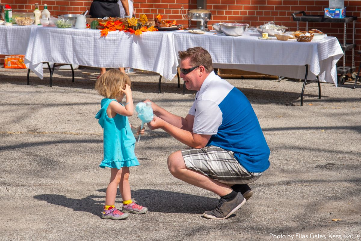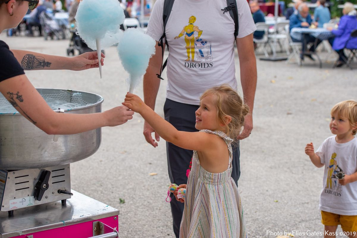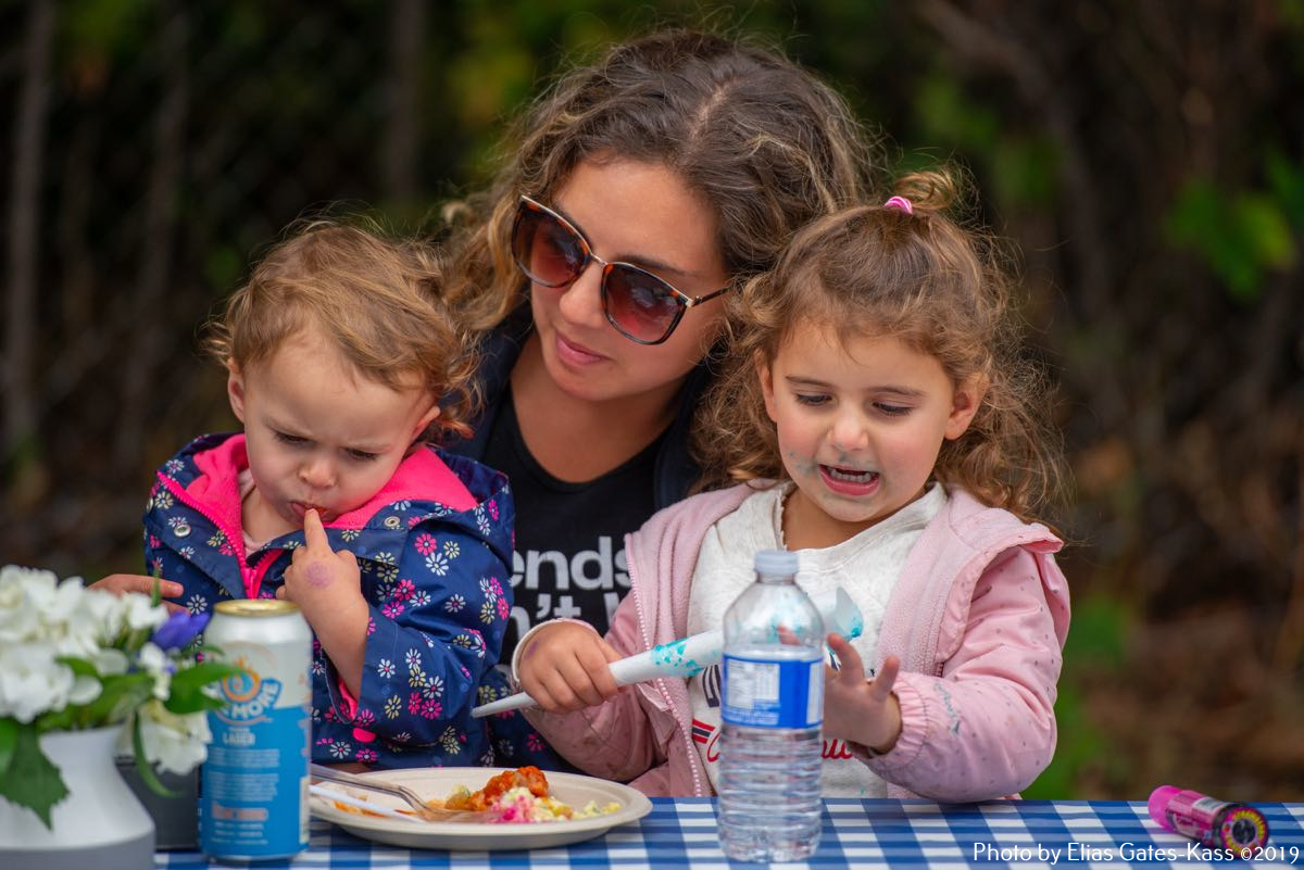 Lõuna paiku kogunes hulgaliselt külastajaid, kes said keha kinnitada Ülle Veltmanni ja abiliste valmistatud lõunasööki maitstes. Tellitud sealiha juurde pakuti eesti salateid, rohesalateid ja muidugi hapukapsast. Kohv ja Ülle Veltmanni kringel ning koogid lisasid mõnusa tunde koosolemisele. Lapsed said suhkruvatti limpsida, hüppelossis hullata, lasta näomaalinguid maalida ja oma osavust proovida erinevatel mänguplatsidel.