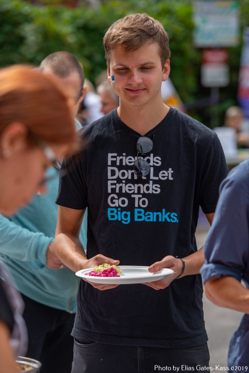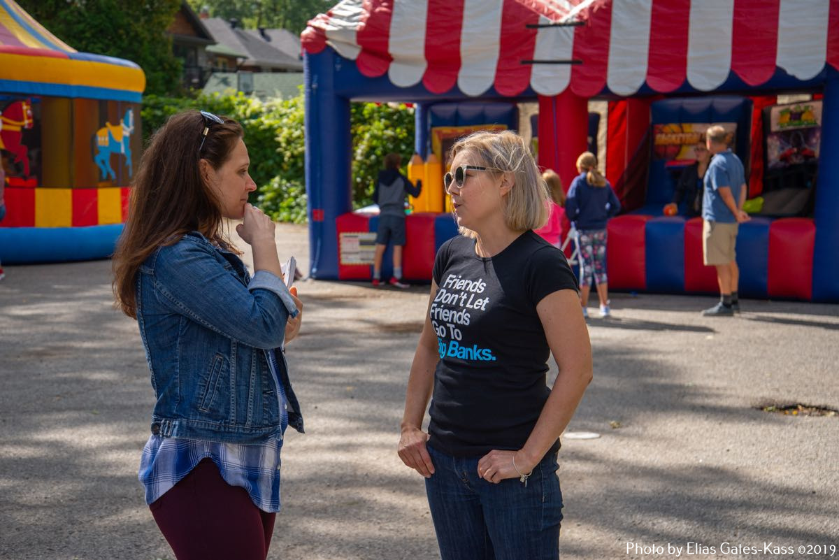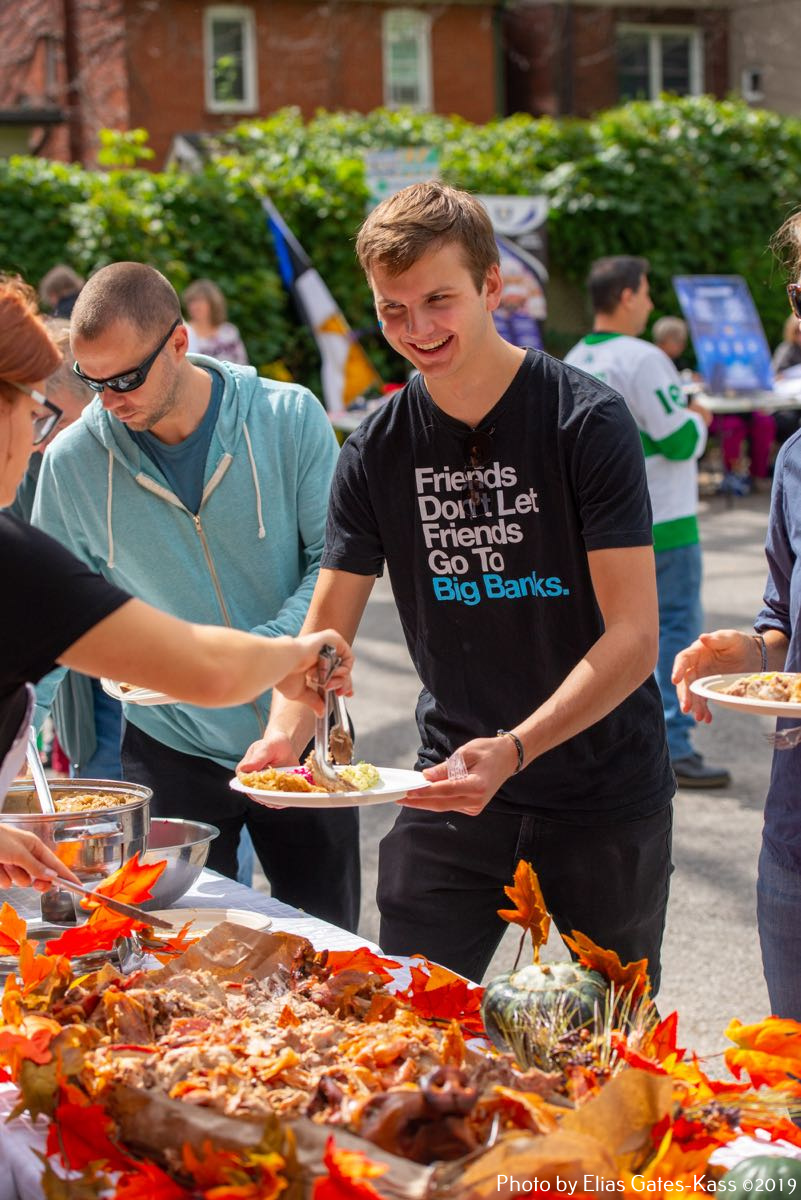 Kogukonnapeol helisesid eesti viisid, hõljusid õhupallid ja suvehoovis nautisid koosolemist eesti kogukonna liikmed mõnekuisest eakateni. Peolised olid rõõmsad, et on olemas üks kindel paik, oma rahva pank, mis on teeninud 65 aastat meie eesti ühiskonda Kanadas. Pangale sooviti liikmete poolt tulevikuks tugevaid ärilepinguid ja head koostööd panganduses.