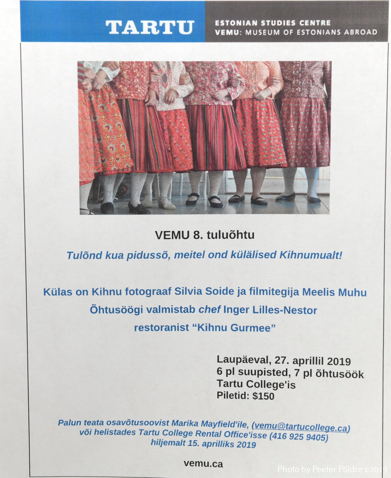Laupäeval, 27. aprillil 2019.a toimus Tartu College'is Kihnu teemaline 8. VEMU tuluõhtu.