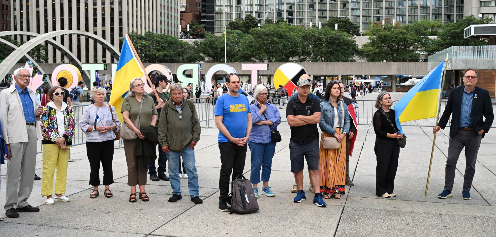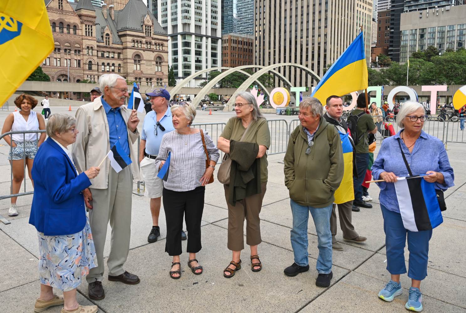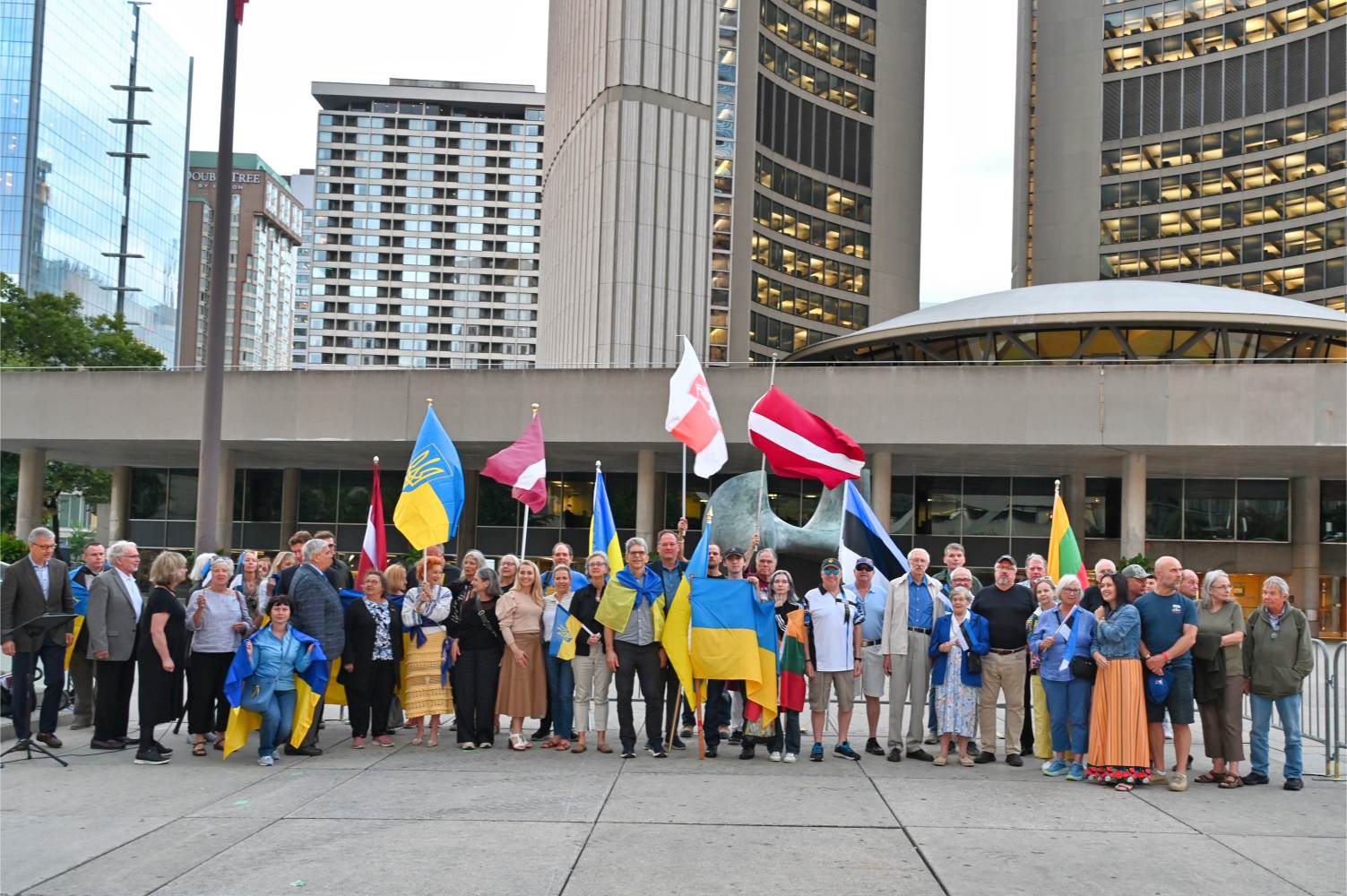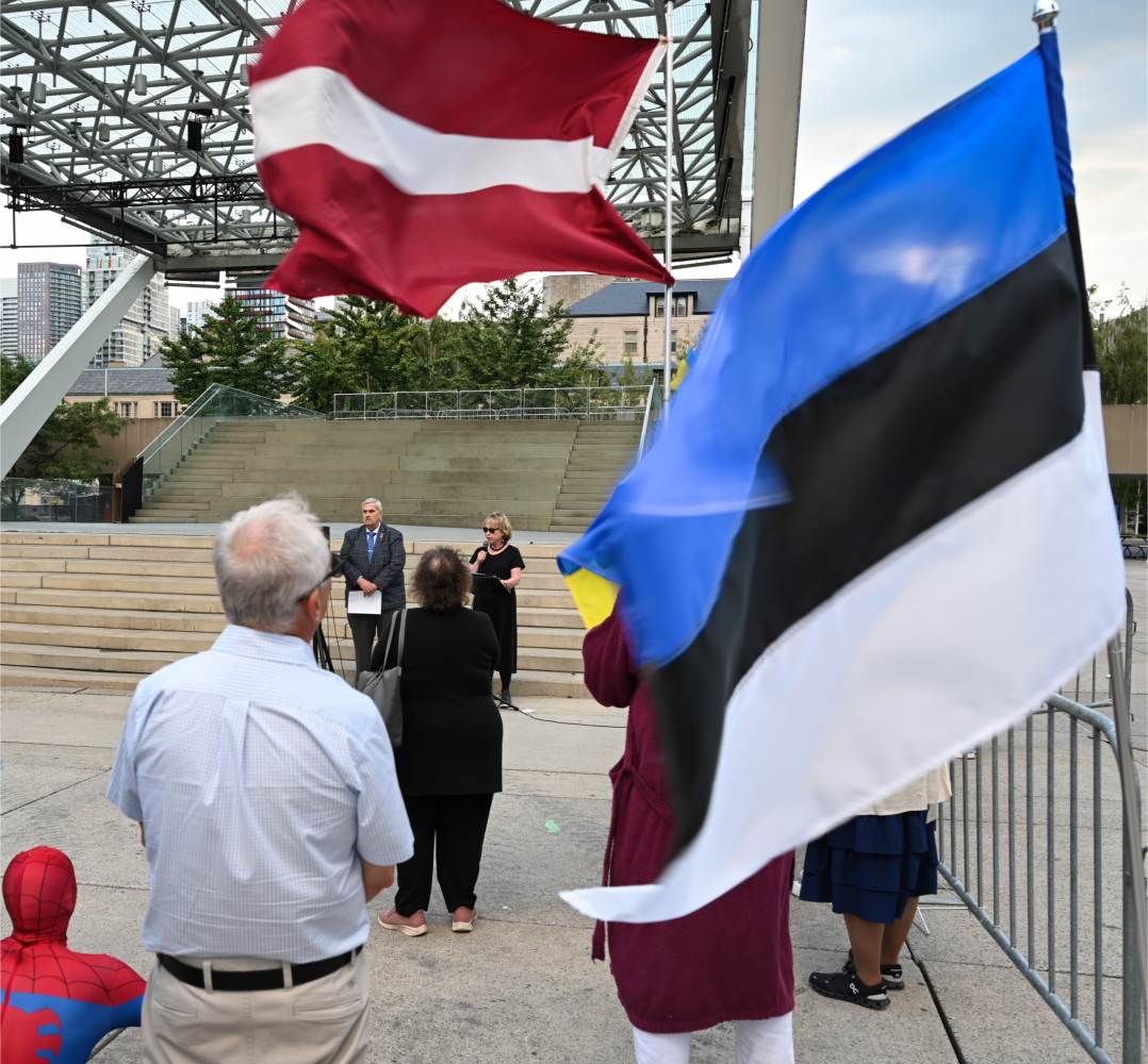 Oikumeenilise palve pidas Fritz Kristbergs, Läti kogukonna keskorganisatsiooni president. Sündmusel oli peakõnelejaks liberaalide parteisse kuuluv parlamendi liige Yvan Baker. Sõna võtsid Eestlaste Kesknõukogu Kanadas (EKN) president Reet Marten-Sehr, keskendudes põhiliselt Molotovi-Ribbentropi paktile ja selle salaprotokollidele, mis viisid okupatsioonini (vt ka R. Marten-Sehri kõnet tänase lehe ingliskeelses osas), Leedu keskorgaganisatsiooni president Kazimieras Deksnys, kelle sõnavõtus oli keskne Balti kett ning ka pealinnast Ottawast kohale sõitnud Eesti suursaadik Margus Rava. Sõnavõtud lõpetas Ukrainian Canadian Congressi Toronto osakonna president Peter Schturyn.