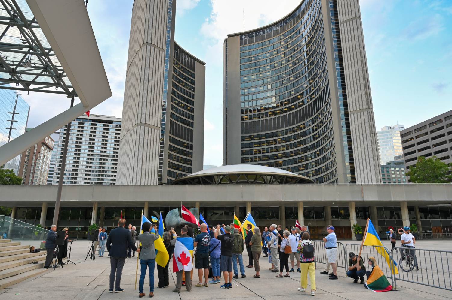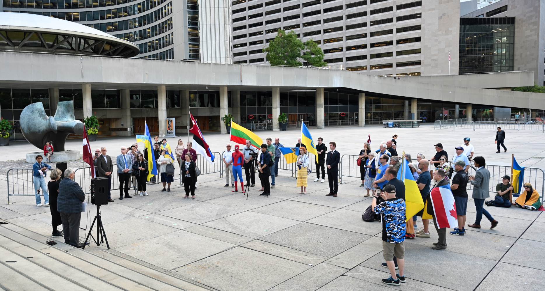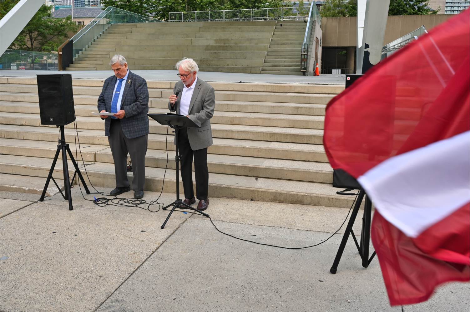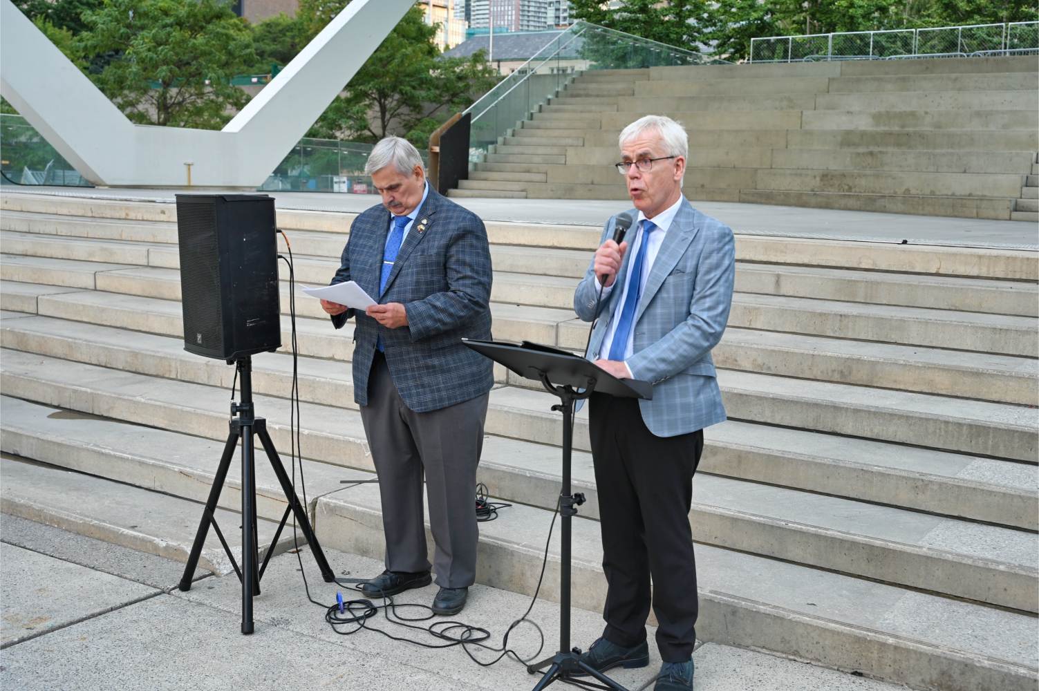 Oikumeenilise palve pidas Fritz Kristbergs, Läti kogukonna keskorganisatsiooni president. Sündmusel oli peakõnelejaks liberaalide parteisse kuuluv parlamendi liige Yvan Baker. Sõna võtsid Eestlaste Kesknõukogu Kanadas (EKN) president Reet Marten-Sehr, keskendudes põhiliselt Molotovi-Ribbentropi paktile ja selle salaprotokollidele, mis viisid okupatsioonini (vt ka R. Marten-Sehri kõnet tänase lehe ingliskeelses osas), Leedu keskorgaganisatsiooni president Kazimieras Deksnys, kelle sõnavõtus oli keskne Balti kett ning ka pealinnast Ottawast kohale sõitnud Eesti suursaadik Margus Rava. Sõnavõtud lõpetas Ukrainian Canadian Congressi Toronto osakonna president Peter Schturyn.