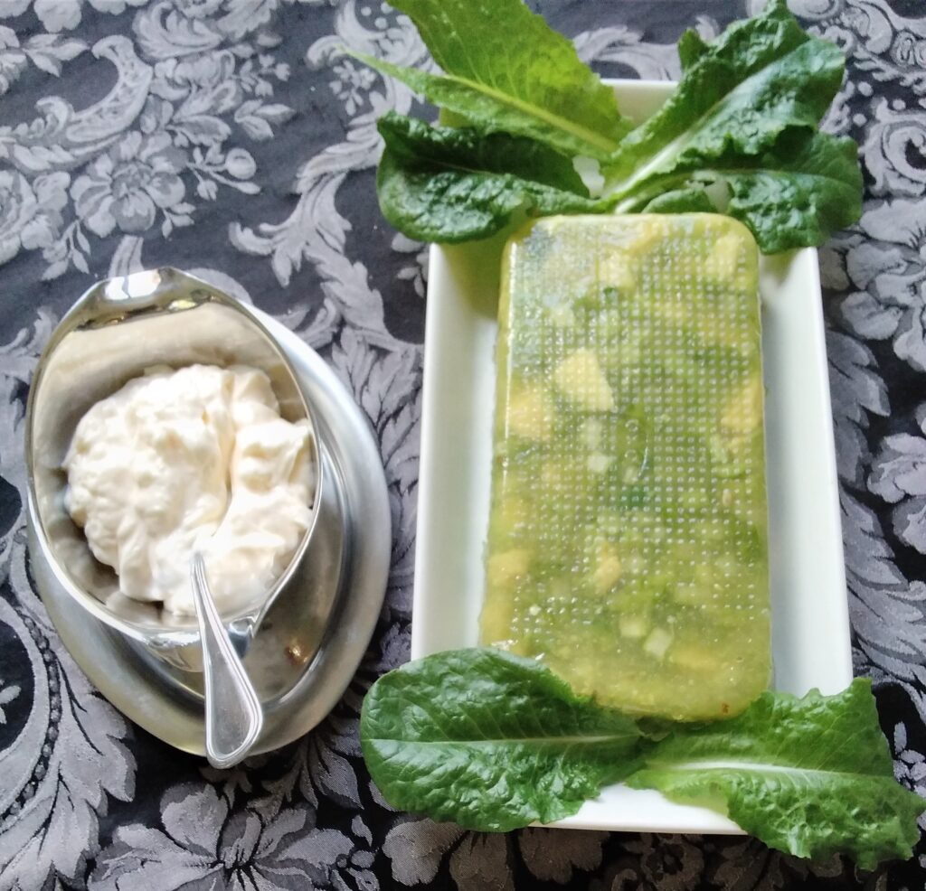 - Unmold and serve the jellied avocado salad with mayonnaise if desired.