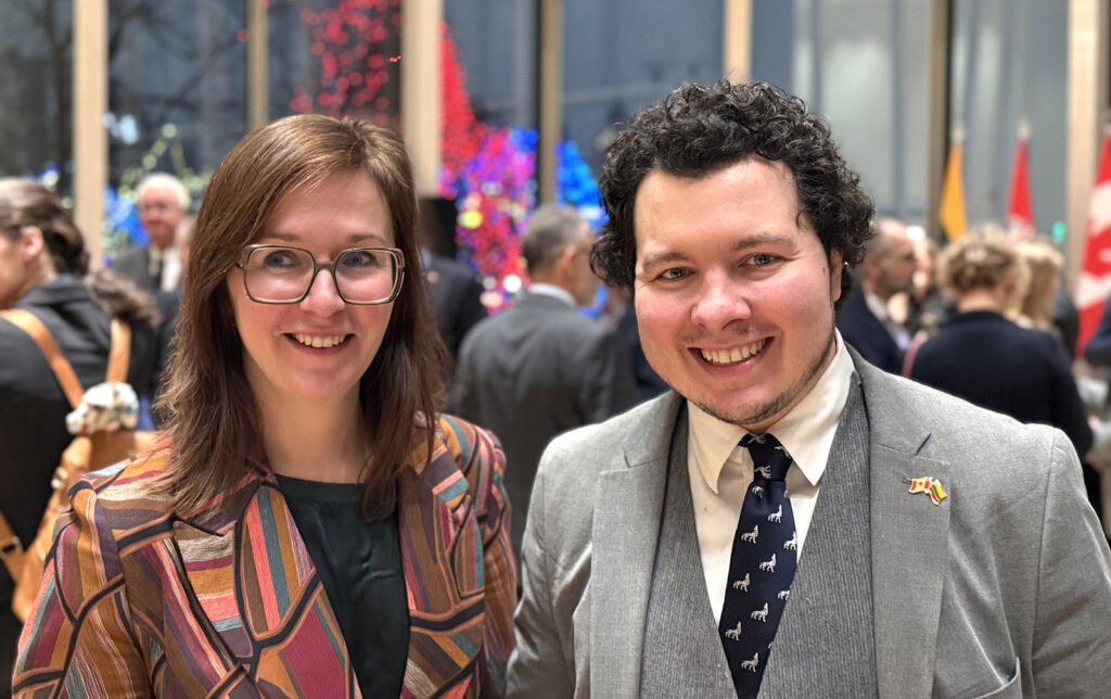 Leedu rahvuspüha tähistamine Ottawas tõi kokku ligi paarsada suursaadikut, diplomaati, Kanada valitsuse liikmeid ja Balti diasporaa esindajaid kogu Vahtralehemaalt. Pildil Liina Tomlinson, Eesti Suursaatkonna majandusatašee ja David Burkholder, Senior Operations Advisor, Office of the Minister of International Trade Global Affairs, Canada