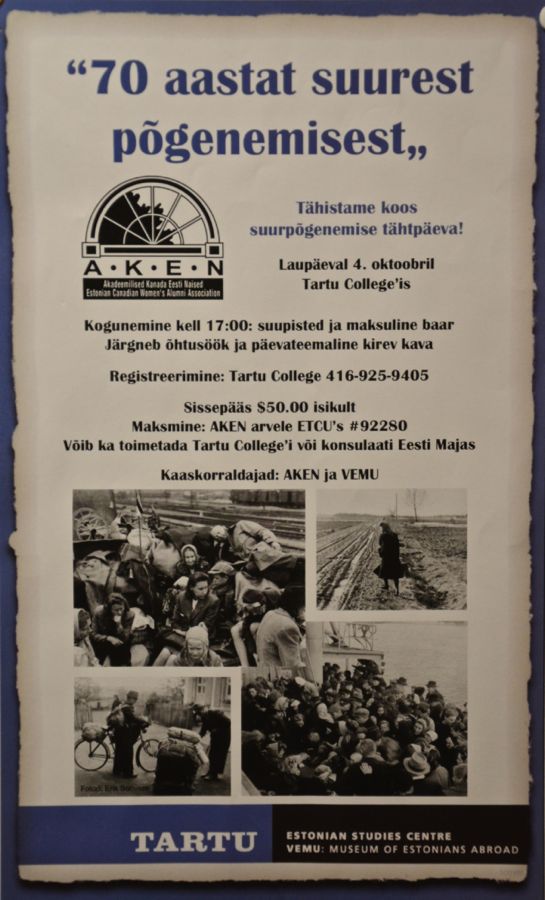 Laupäeval, 4. oktoobril (2014) toimus Tartu College'is naisorganisatsiooni AKEN ja VEMU korralduses meenutusüritus "70 aastat suurest põgenemisest". Ürituse eesmärgiks oli meenutada 1944. aasta septembris toimunud massilist punavägede eest põgenemist läände ja seda kuidas põgenike elu edasi kulges.