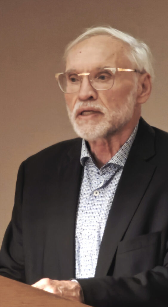 ,,Mina olen eesti luuletaja,“ kõlas loengu alustuseks. Kuidas sai eesti keelest mitte-eestlase kodukeel, mõttekeel ning suur osa tema identiteedist, oli juba juttu (ja lausa mehe enda häälega helilõike) ülemöödunud nädala Eesti Elus (vt R. Kindlam „Haapsallu pakku“, EE # 36, 12.09.2025). Tartu College’i ümmargusel aastapäeval saime lisaks teada, et sellele keeletasemele jõudmiseni on andnud omajagu hoogu juurde ka talisuplus, laulmine segakooris ,,Noorus“ (kaasneva laulupidude kogemusega), pärimusmuusikaline viiuldamine ja üksik ,,hütt“ Noarootsis.