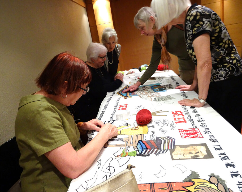 Loengule järgnes pidulik ja meeleolukas koosviibimine uute raamatute müügi, VEMU kogude kõige vanemate raamatute väljapaneku ning Eestist kohale toodud plakativormis kakskeelse näitusega ,,Eesti Raamat 500“ koomiksi vormis, mille pildid koos tekstiga on loonud Joonas Sildre. Vaimukas, haarav ja hariv piltide sari, mis oli samade, ainult et mitmekordselt suuremate plakatitena üleval Tallinna Tammsaare pargis suvel, on Tartus College’i koridoris vaadeldav uue aasta 16. jaanuarini.