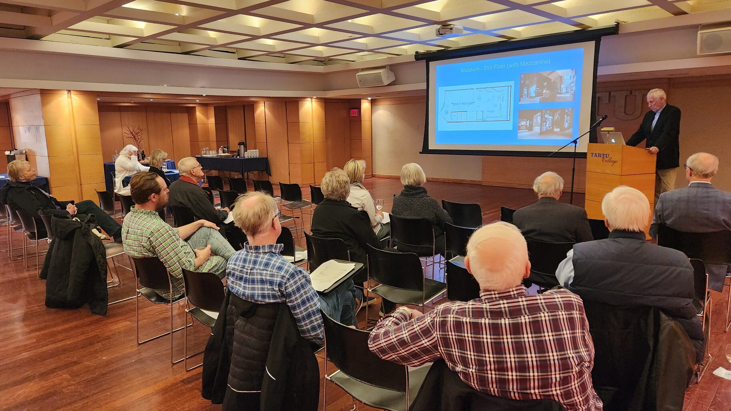 The meeting began with the presentation of the not-for-profit corporation's financial statements and a summary of the budget for the coming year. The presentation of the financial statements revealed that Tartu College (TC) recovered well in the past year, after several years of the COVID-19 pandemic. TC’s revenue stream was stronger than it had ever been. As Peeter Einola from the TC Executive Committee noted, “Tartu College’s revenues were notably up and, by continuing to keep expenses constrained, our excess revenues over expenses have increased our cash flow, enabling Tartu College to support Estonian community programs fully and do major renovations in the building.”