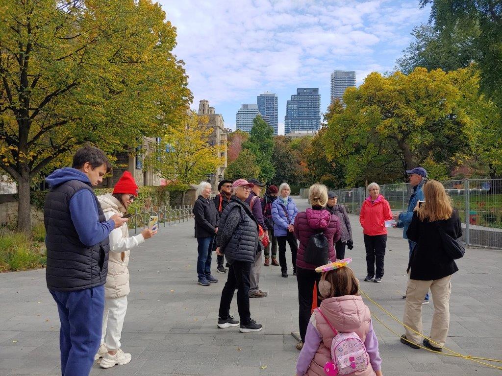 The walk wound its way through the University of Toronto campus, from which hundreds of Estonians have graduated. U of T engineering alumni Peeter Einola was the guide. The tour was joined by Estonians and also others, including a refugee family from Ukraine.