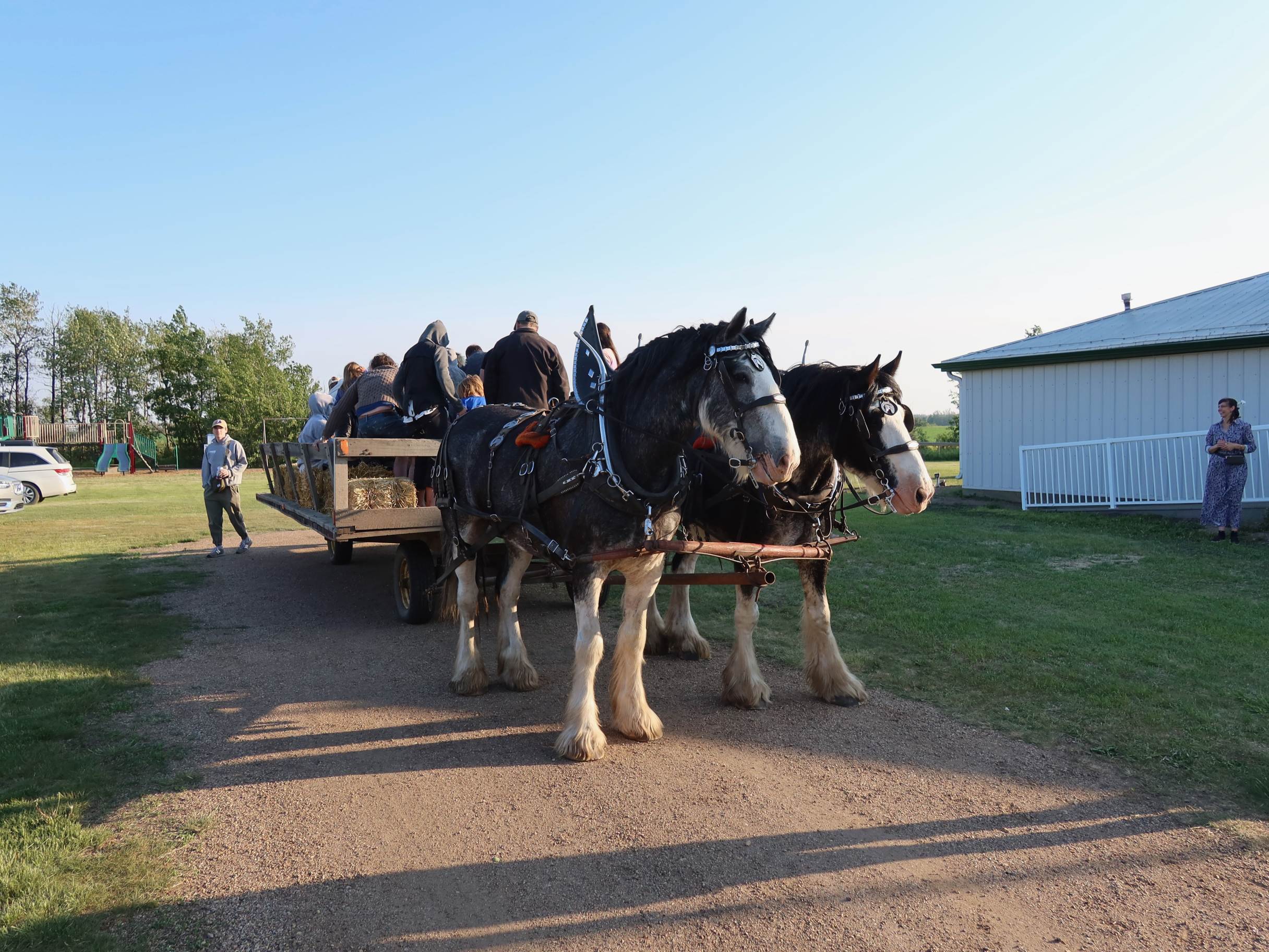 Wagon ride on the prairie powered by Clydesdale horses (photo by Kelly Schuler-McDonald)