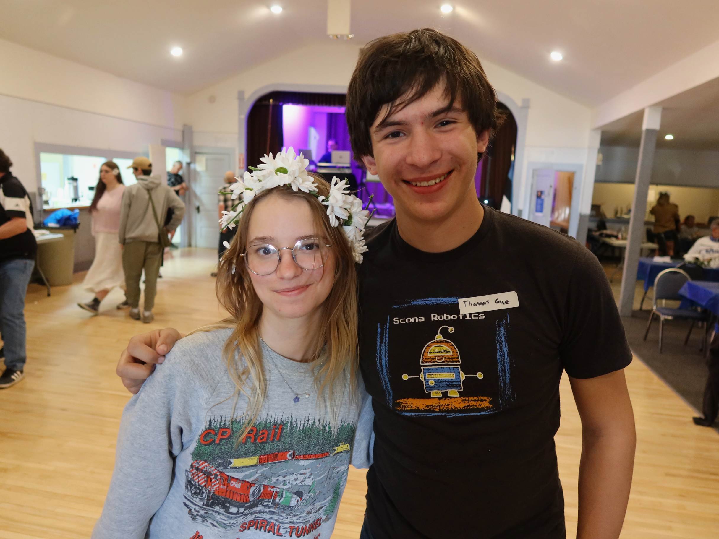Cousins reunion Naomi Gue and Thomas Gue with the DJ and dance floor at the legendary Linda Hall (photo by Kelly Schuler-McDonald)