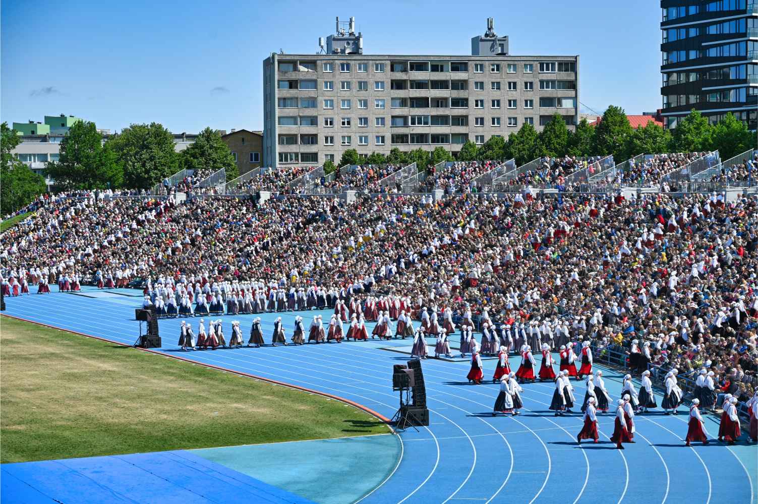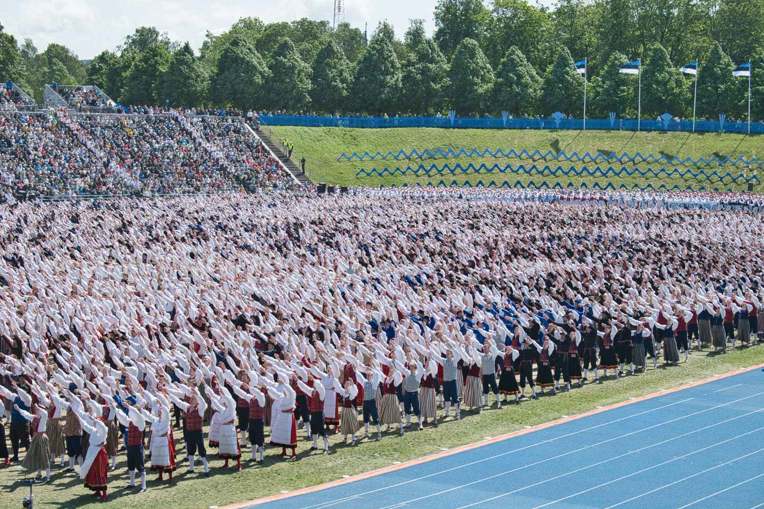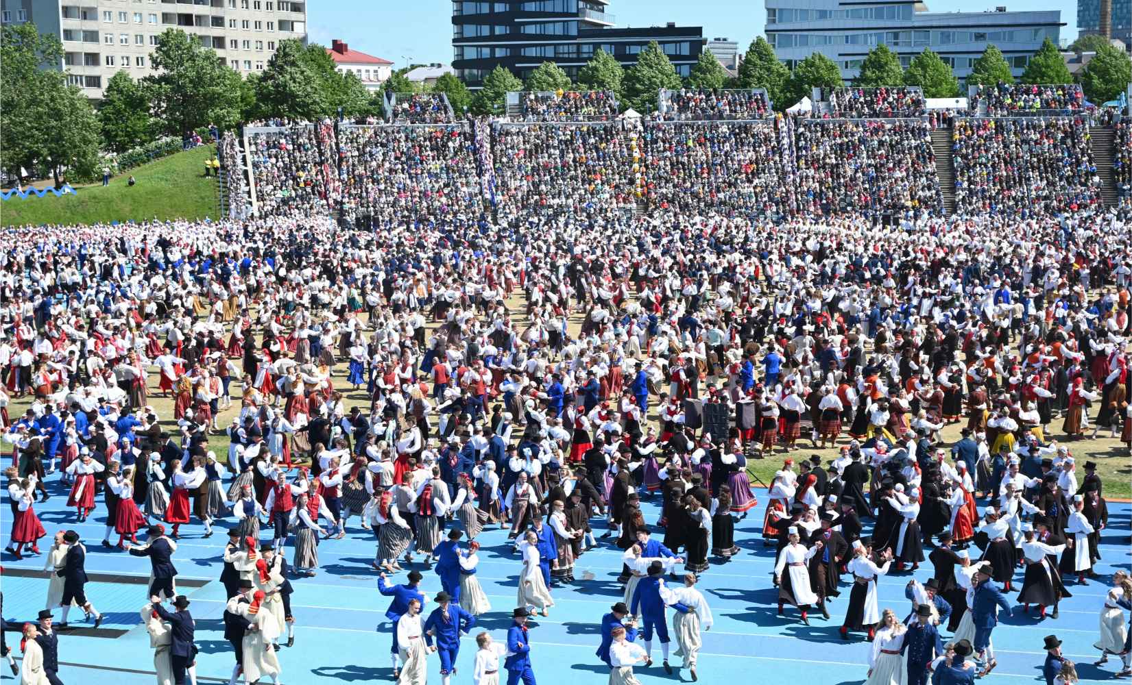 At the Estonian Dance Festival / Celebration, there is the opportunity to see the dancers perform three times, so no one misses the opportunity to see their hard work and preparation in action. This year, 2025 (Tantsupidu XXI), was no exception. In the gallery below, see the movements of the dancers up-close and with different lenses, courtesy of Eesti Elu photographer Peeter Põldre.