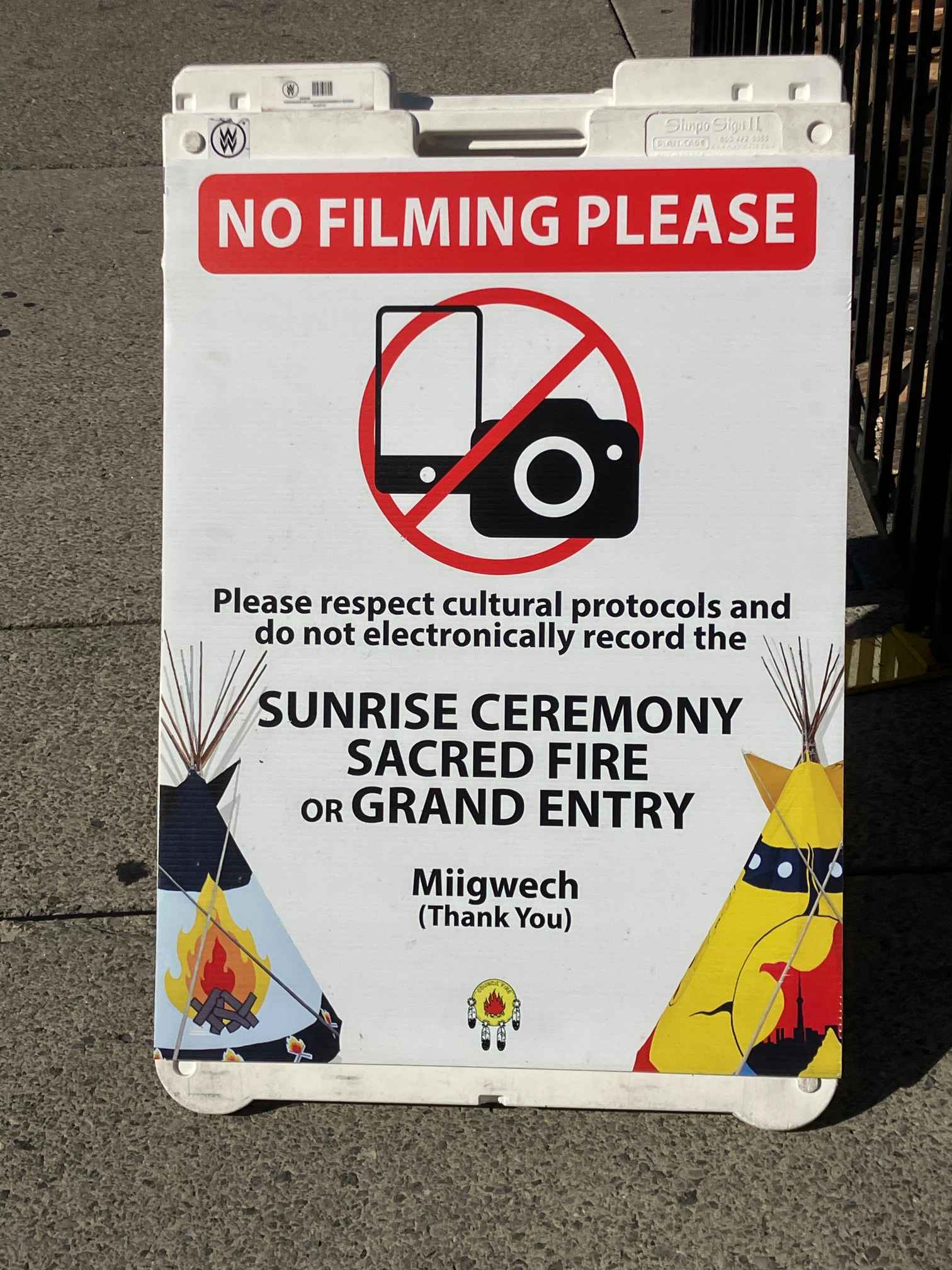 See oli tegelikult suisa kaks päeva vältav üritus (29. ja 30.09), mida veab Toronto Council Fire Native Cultural Centre. Nõukogu või istungi tseremoniaalne tuli põles Põhja-Ameerika esmarahvaste nõupidamiste ajal. Põles ka Raekoja platsil neil kahel päeval. Tuld paluti mitte filmida, nii nagu meiegi hiies on püha tseremoonia taoline jäädvustamine taunitud. Jäävad mälupildid ja hingesoojus.