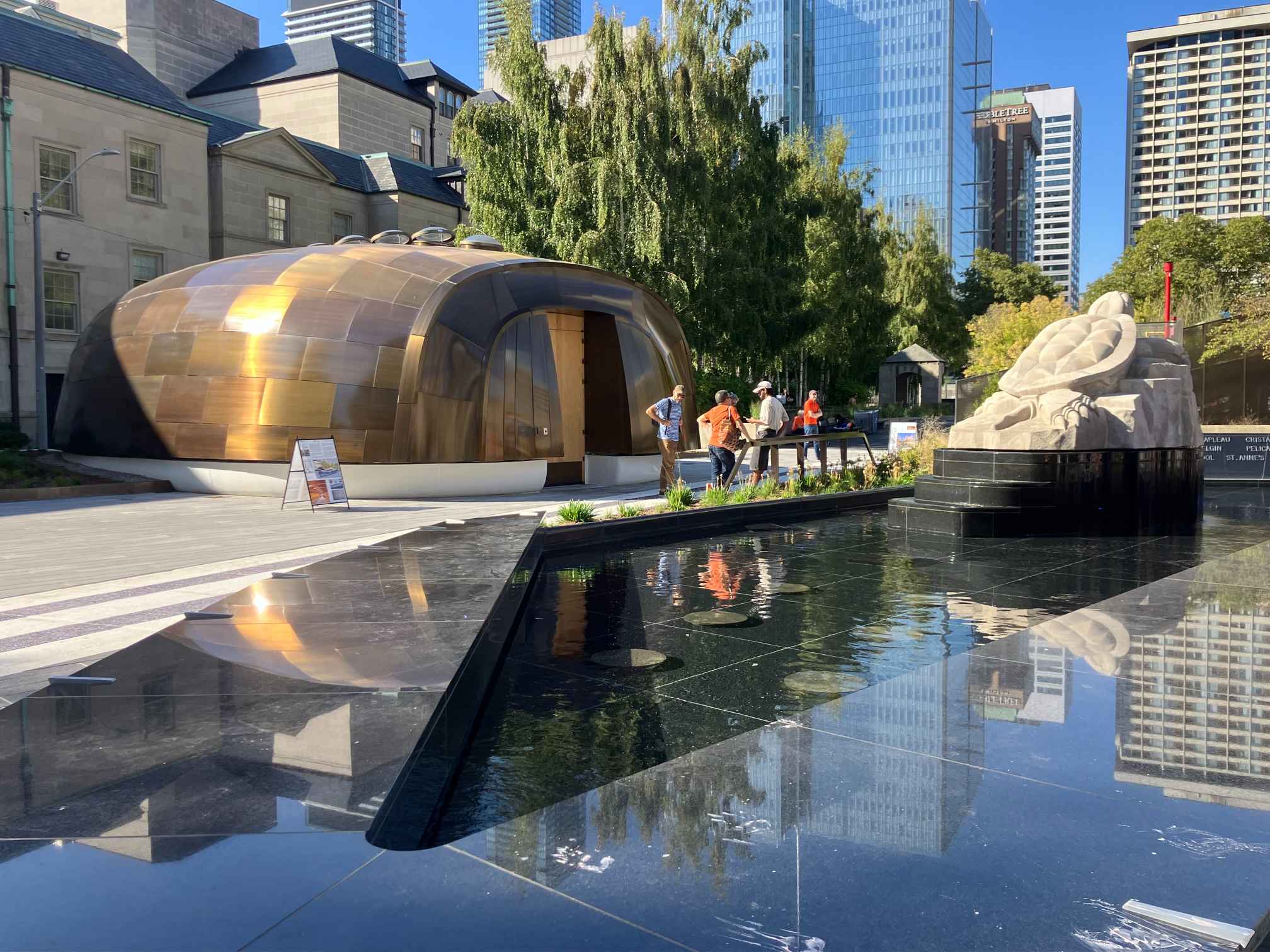 Lisaks rahuaiale on Nathan Phillips väljakul läinud aastast ka esmarahvaste hingeaed, kus kasvab neile olulisi taimi ja vilju, on tare kogunemisteks, valvab suur kilpkonna kuju ning võib istuda hõbedases hingedekanuus. See on uskumatu saavutus kõikidele osapooltele ja asjaosalistele; mõtisklemise, mälestamise ja hingamise paik. Lootuse majakas ja palsam hingele keset suurt mürisevat linna, kus kunagi voolasid veed ja kõrgusid püstkojad.