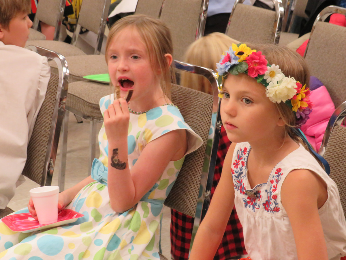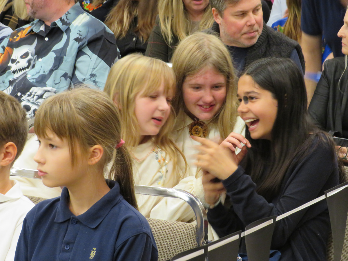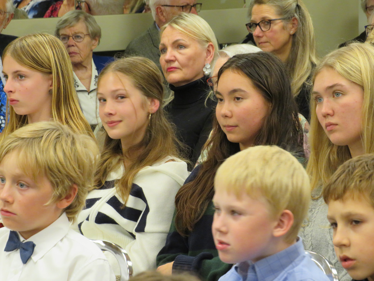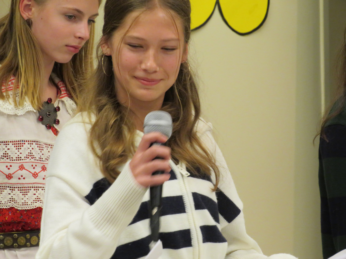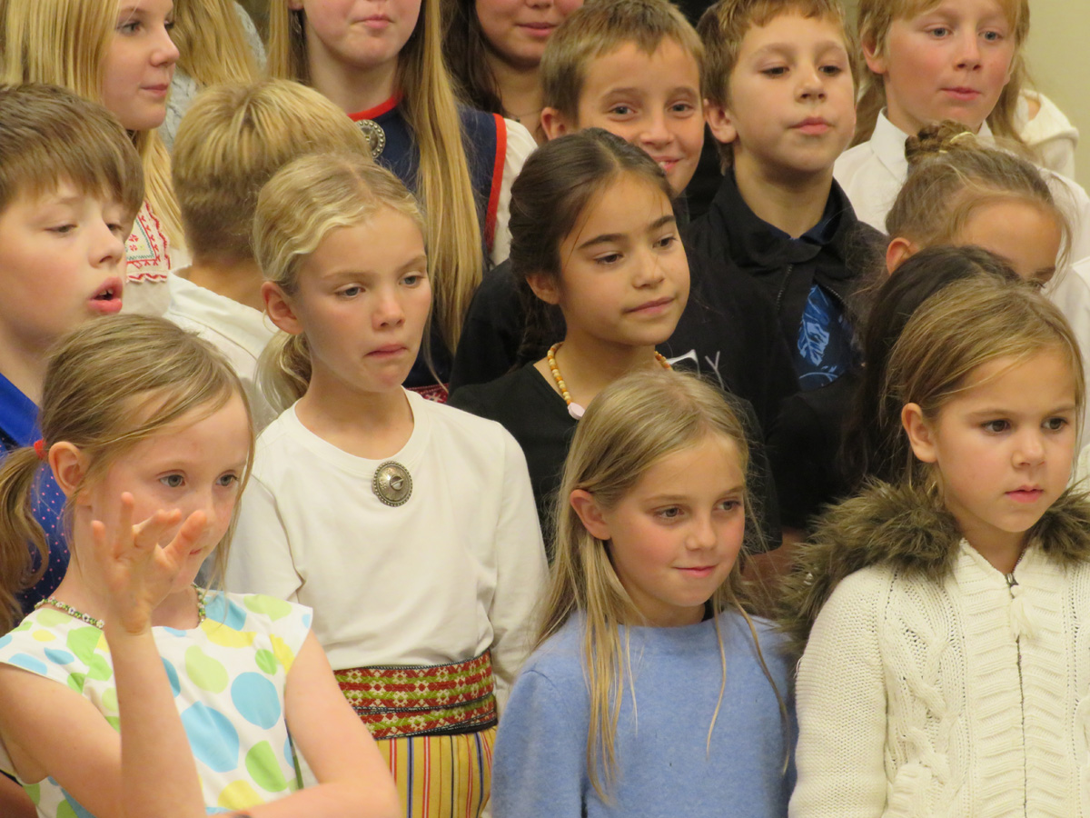 Seejärel said esinemisjärje tänased koolilapsed. Vera Remerowski esituses kõlas Arved Viirlaiu „Kingi mulle võti“, mis kirjutatud täienduskooli 40. aastapäevaks. Katre Kinki juhendatavad noorimad lapsed esitasid U. Leiese „Kaks õuna“, 4-5 klass (õp Erika Kessa) O. Saare „Tarkus tuleb tasapisi“ ja liisusalmi „Üks valge tuvi“. Vanimad õpilased (õp Kai Kiilaspea) esitasid aga koolinalju, mis tõid saalist mõnusaid naerupahvakuid.