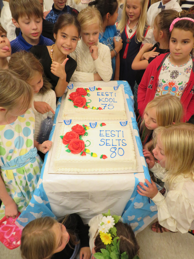 Lõpuks oli aeg sünnipäevatortideks – need tõid saali Anne-Liis Keelmann ja Elle Rosenberg. Lauldi sünnipäevalaulu ja tehti pilte. Oli tore näha, et endisi koolijuhatajaid ja õpetajaid oli kohal hulgaliselt. Meenutati armastatud ja lugupeetud koolipapat Edgar Martenit, kel oleks tänagi põhjust koolipere tegemiste üle rõõmu tunda.