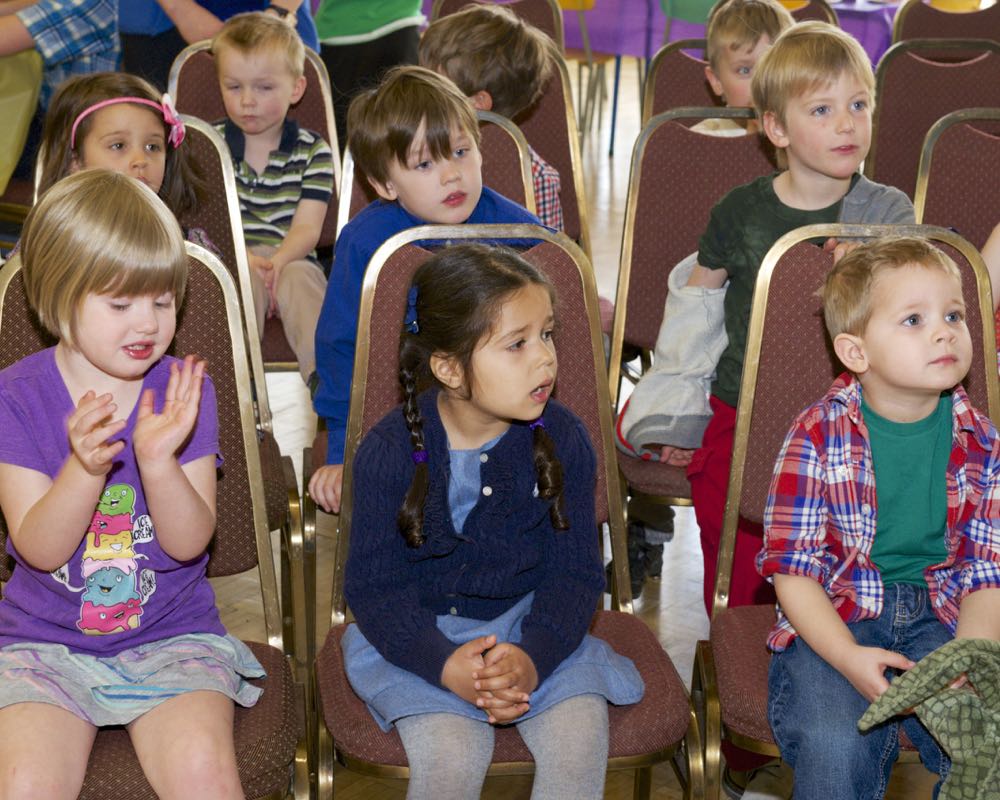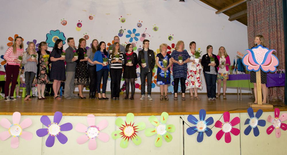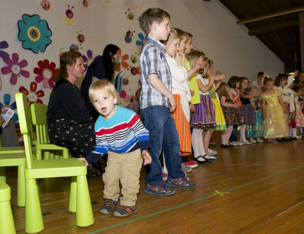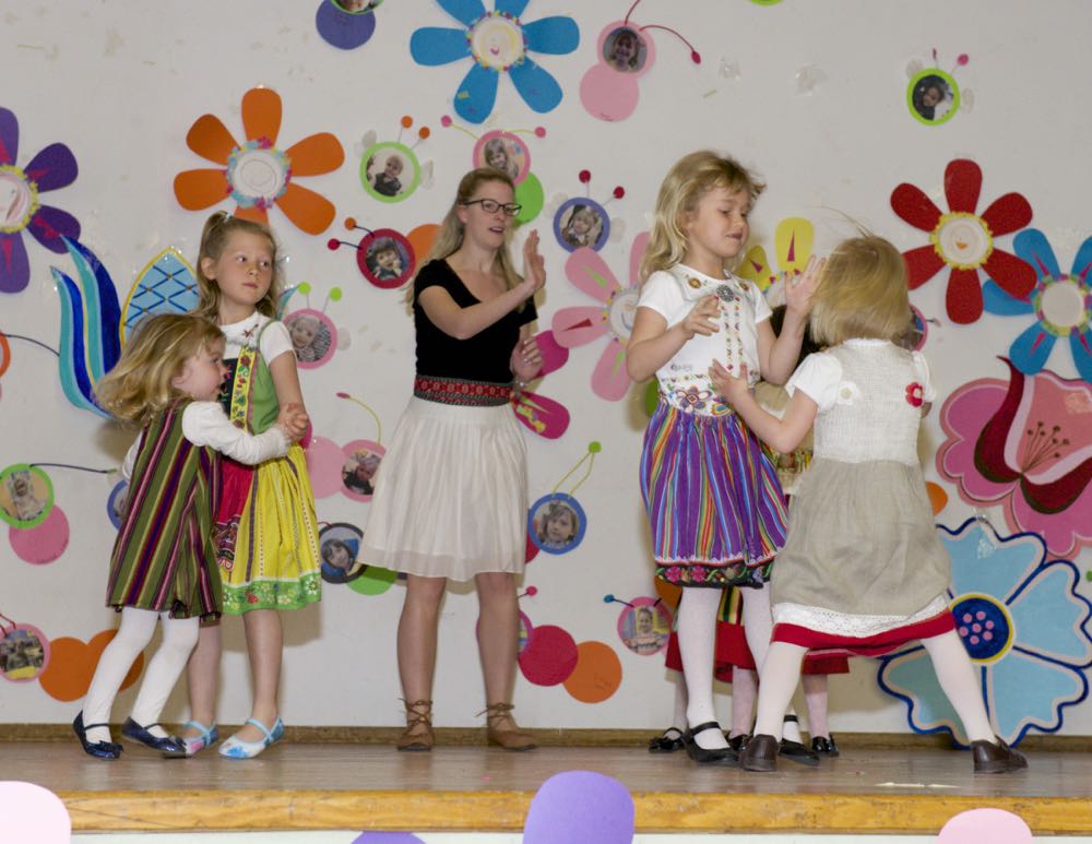 Koosviibimise teadustaja Katrin Sõmermaa tutvustas Lasteaia juhatajat, Liisa Novekit, kes tervitas külalisi ja soovis õnne lasteaia lõpetajatele. Lasteaia I. klass esines lastelauluga “Eestimaa” (klassijuhajad Katrin Sõmermaa ja Helina Tamm). Järgnes esinemine Toronto Eesti Rahvatantsu Rühma “Kungla” lastegrupilt, kes esines rahvatantsudega Viive Kittaski ja Kristina Põldre juhatusel. Lasteaia lapsed olid ka lavale ilmunud, et esitada emadepäeva laule, Liina Purje-Lepiku juhatusel.