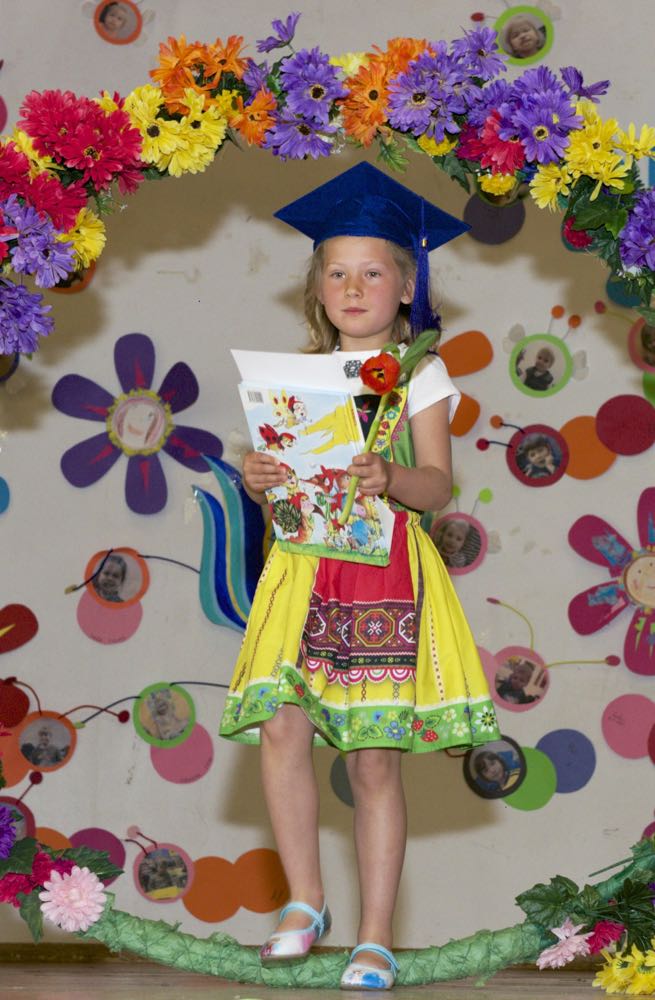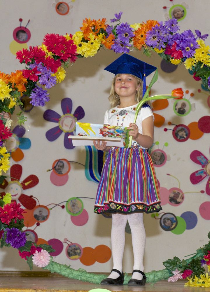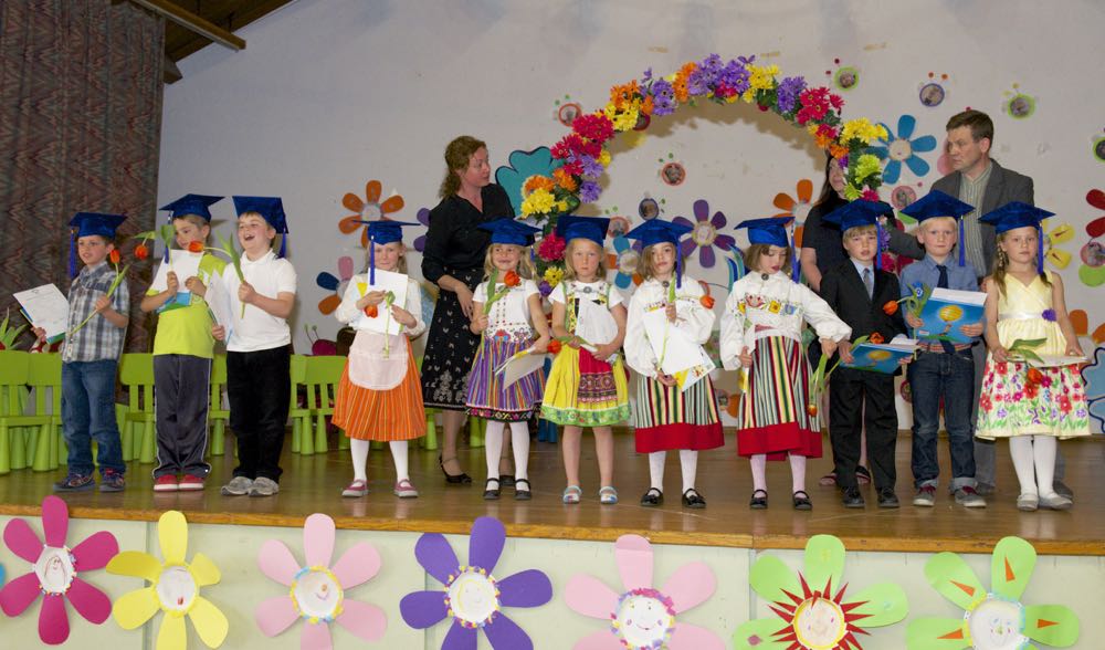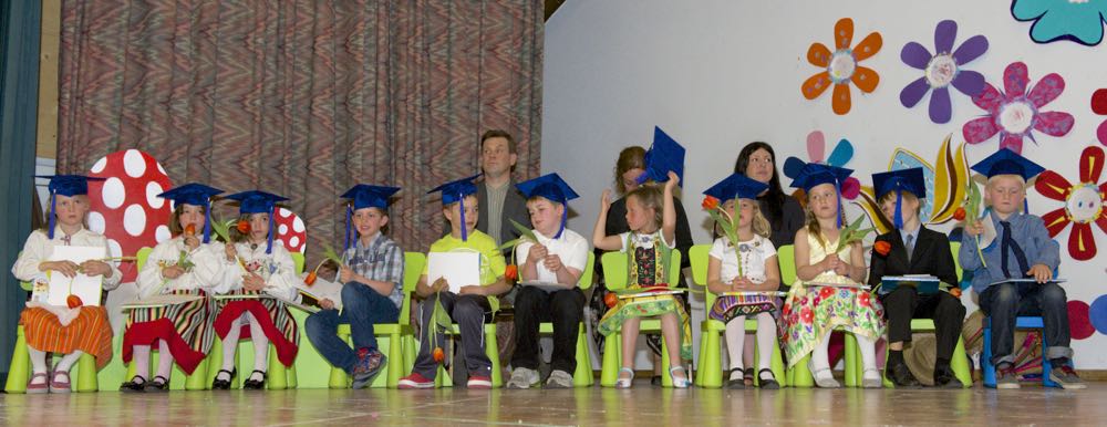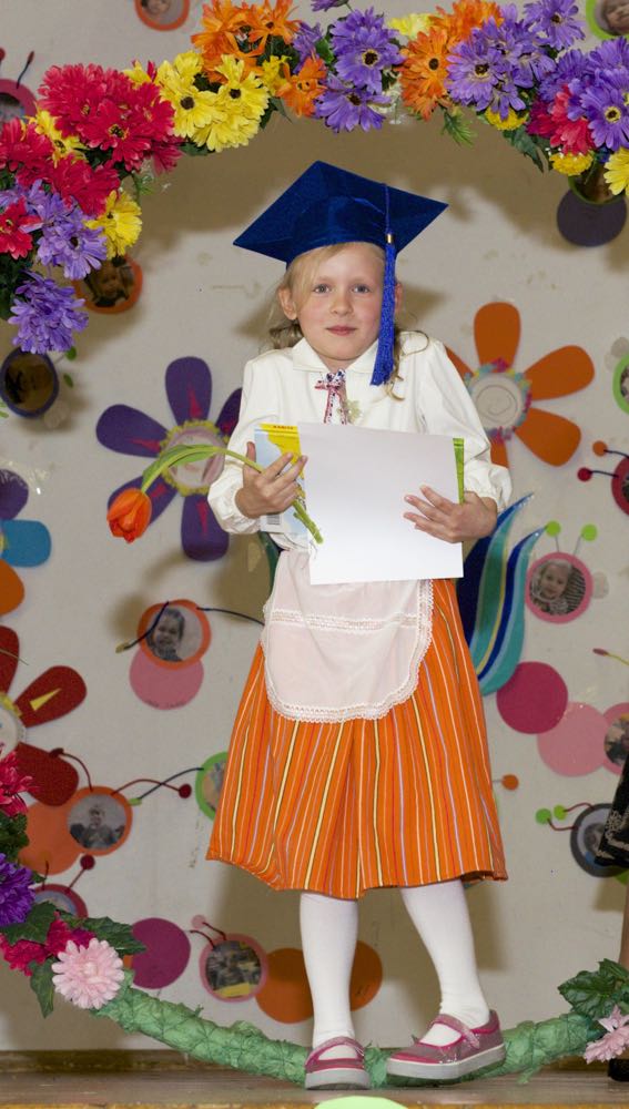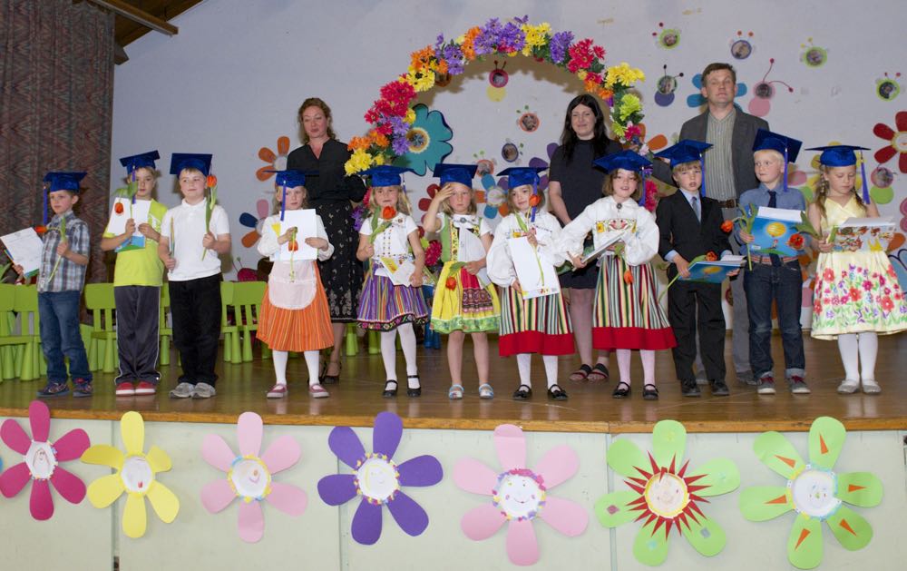 Järgnes lõpetajate klassi etendus, kus lõpetajad laulsid “Tikk takk tiksub kell” (immersiooni klass) ja “Põdra maja metsa sees” (eesti keele klass). Kõik lõpetajad ja IV. klassi kasvatajad ka esitasid laulu ja tansuga “Mesimumm”.