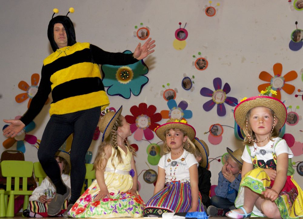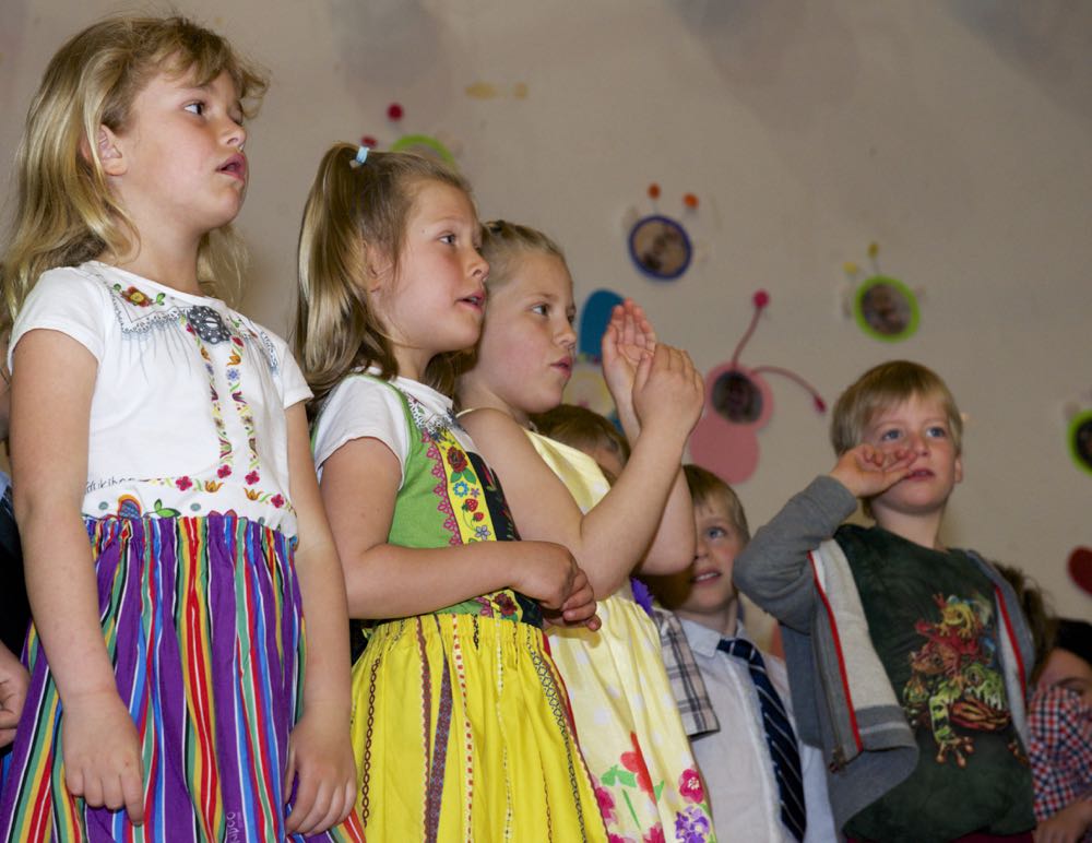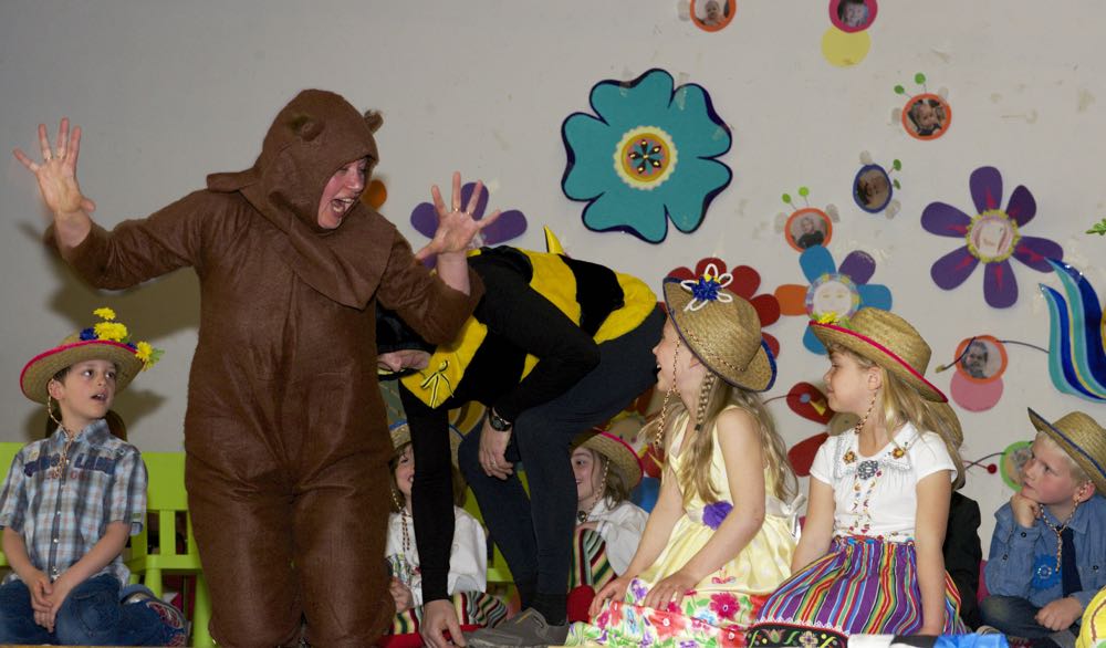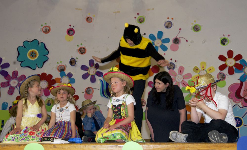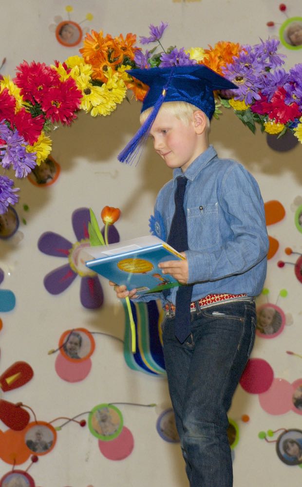 Järgnes lõpetajate klassi etendus, kus lõpetajad laulsid “Tikk takk tiksub kell” (immersiooni klass) ja “Põdra maja metsa sees” (eesti keele klass). Kõik lõpetajad ja IV. klassi kasvatajad ka esitasid laulu ja tansuga “Mesimumm”.