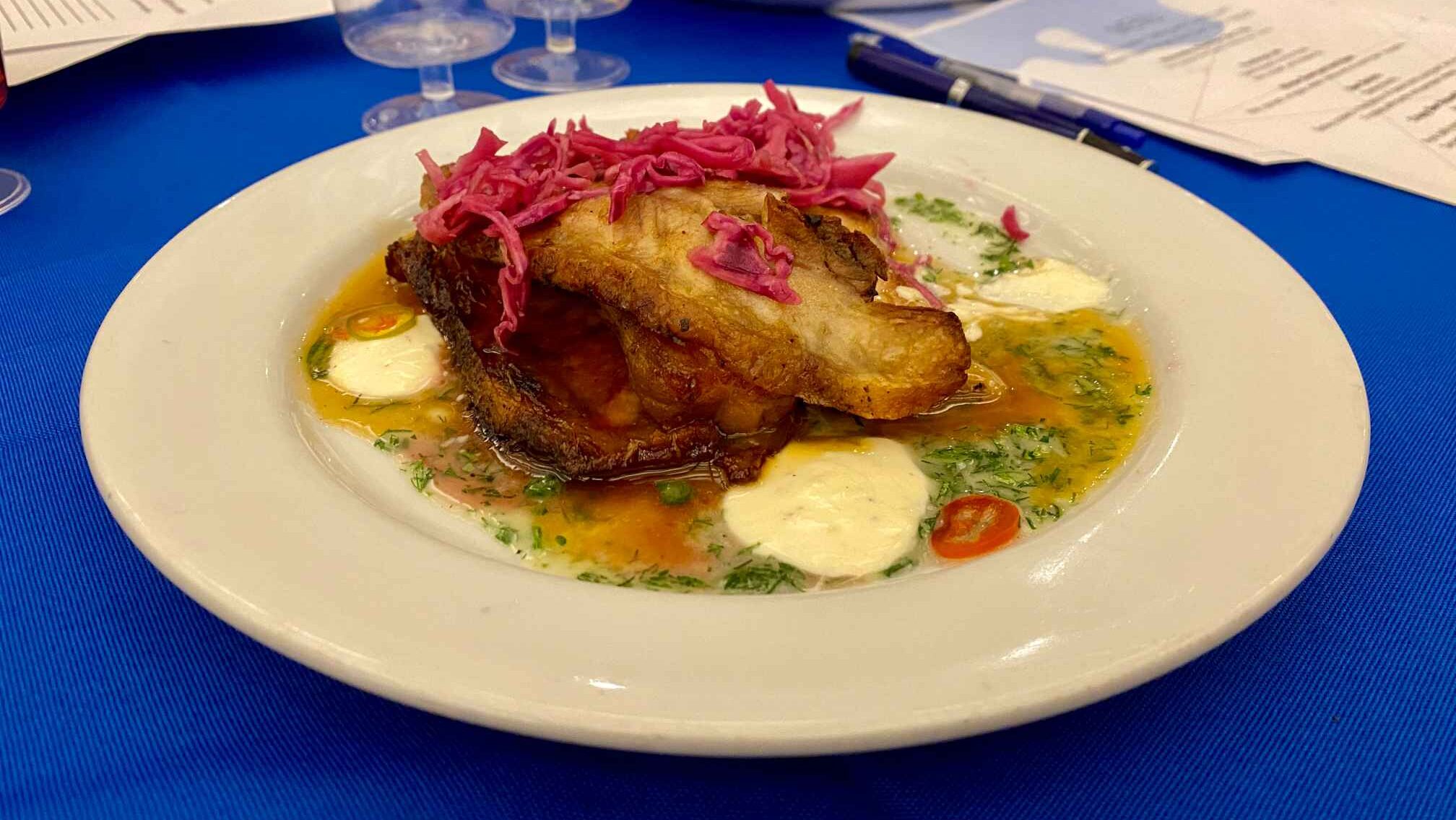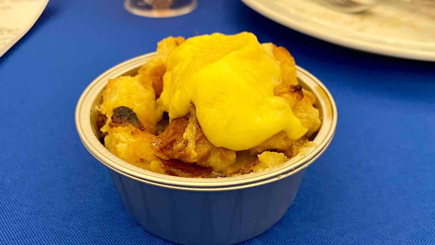 Kringel Bread Pudding with Beer Syrup and Crème Anglaise