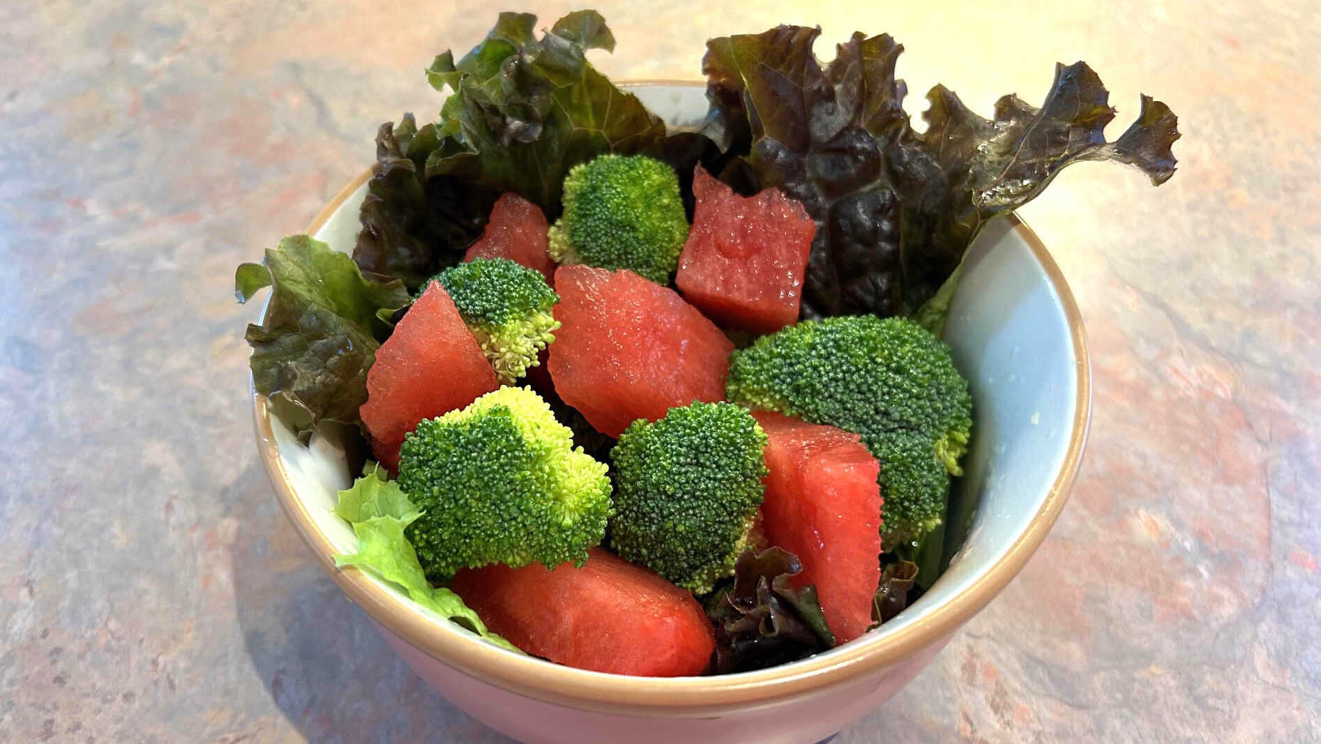 Jõuluvärvides brokoli-arbuusi salat