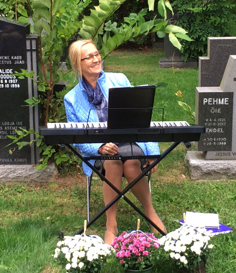 Kalmistupühal teenis õpetaja Kalle Kadakas, laule saatis süntesaatoril Juha Tikkanen. Kahe lauluga kaunistas teenistust Heli Tenno.