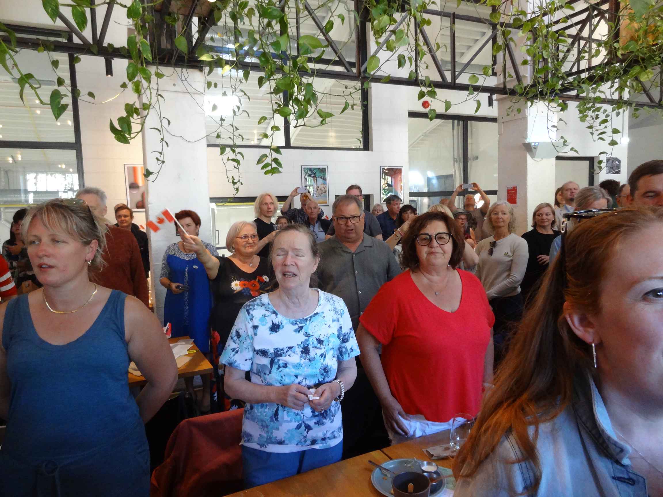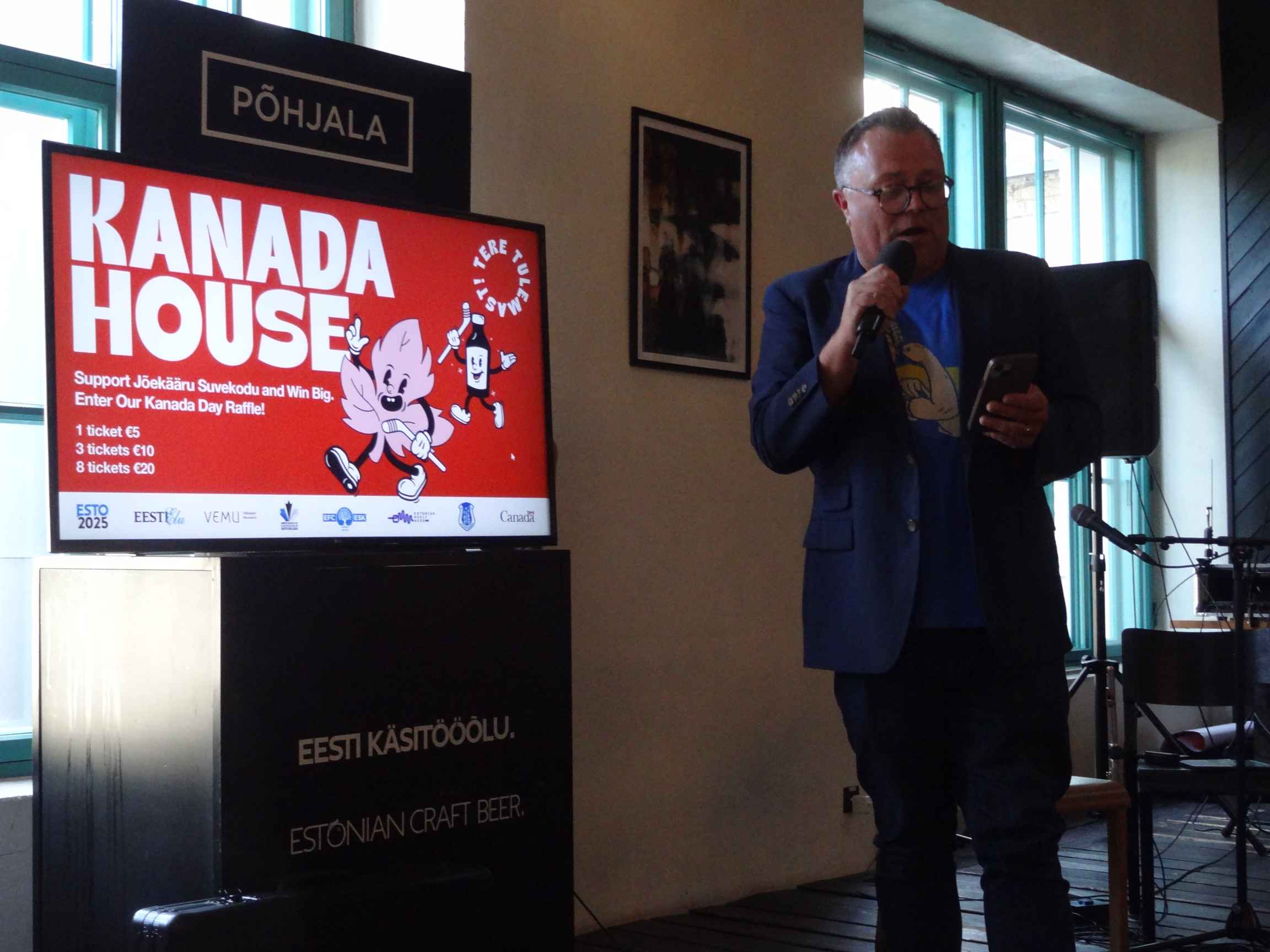 With so many people gathering together for Laulupidu XXVIII (the Estonian Song Festival / song celebration) Tantsupidu XXI (the Estonian Dance Festival / Celebration), on July 1st, 2025, Estonians, Canadians, and international guests from near and far got together in Tallinn to celebrate Canada Day at Põhjala Brewery's tap room. The evening included craft beer and food, dancing, a road hockey game, and some special guests.