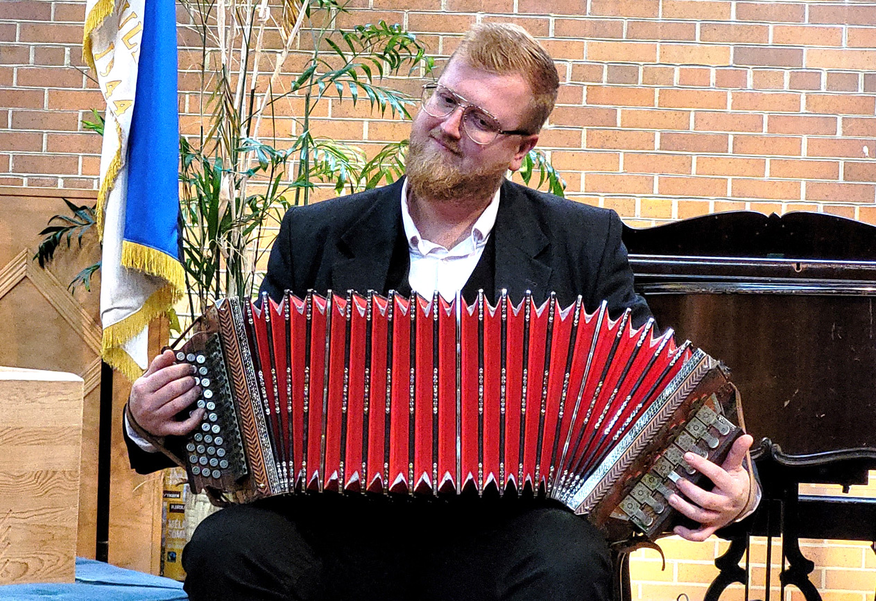 The service was led by Reverend Ando Kass and Deacon Karl Paju with our organist Erik Kreem. Visiting from Estonia was accordionist Henrik Hinrikus who performed “Kesk õitsvaid lilli” and “Valss Saaremaalt.” Scripture readings were by Väino Keelmann and Kristina Leis. During the service, the “mudilased” with their parents of the “Moms, Pops and Tots” group, participated in the service.